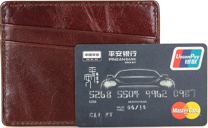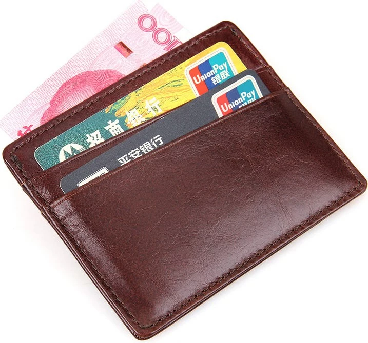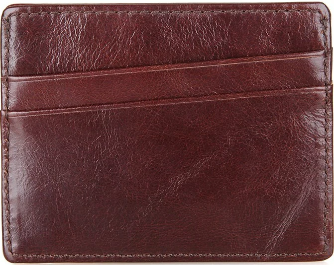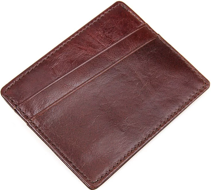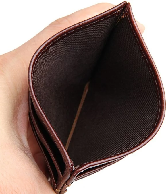 Небольшая кожаная кредитница из натуральной кожи коричневого цвета. Такой аксессуар выглядит очень элегантно и может использоваться для хранения купюр. Кредитница упакована в текстильный пылезащитный чехол.