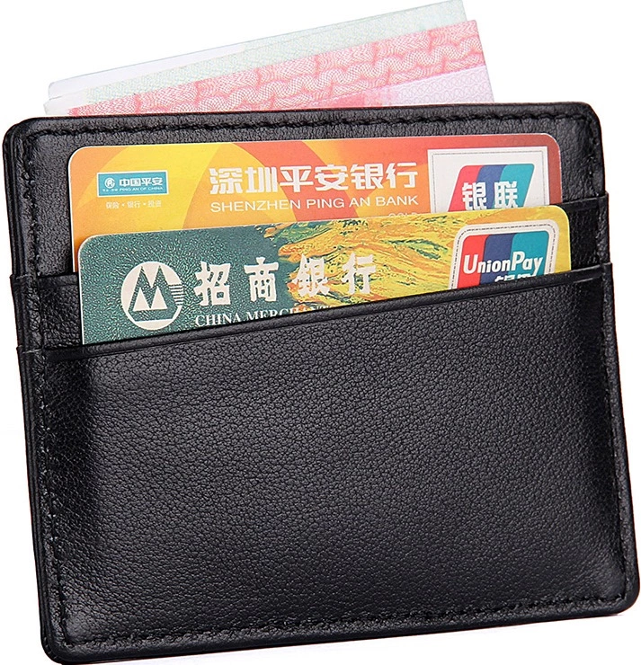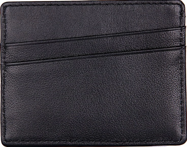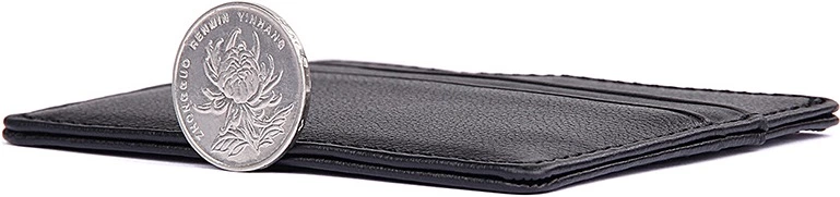Компактная кожаная кредитница из натуральной кожи черного цвета, без застежки. Такой аксессуар выглядит очень элегантно и может использоваться для хранения купюр. Кредитница упакована в текстильный пылезащитный чехол.