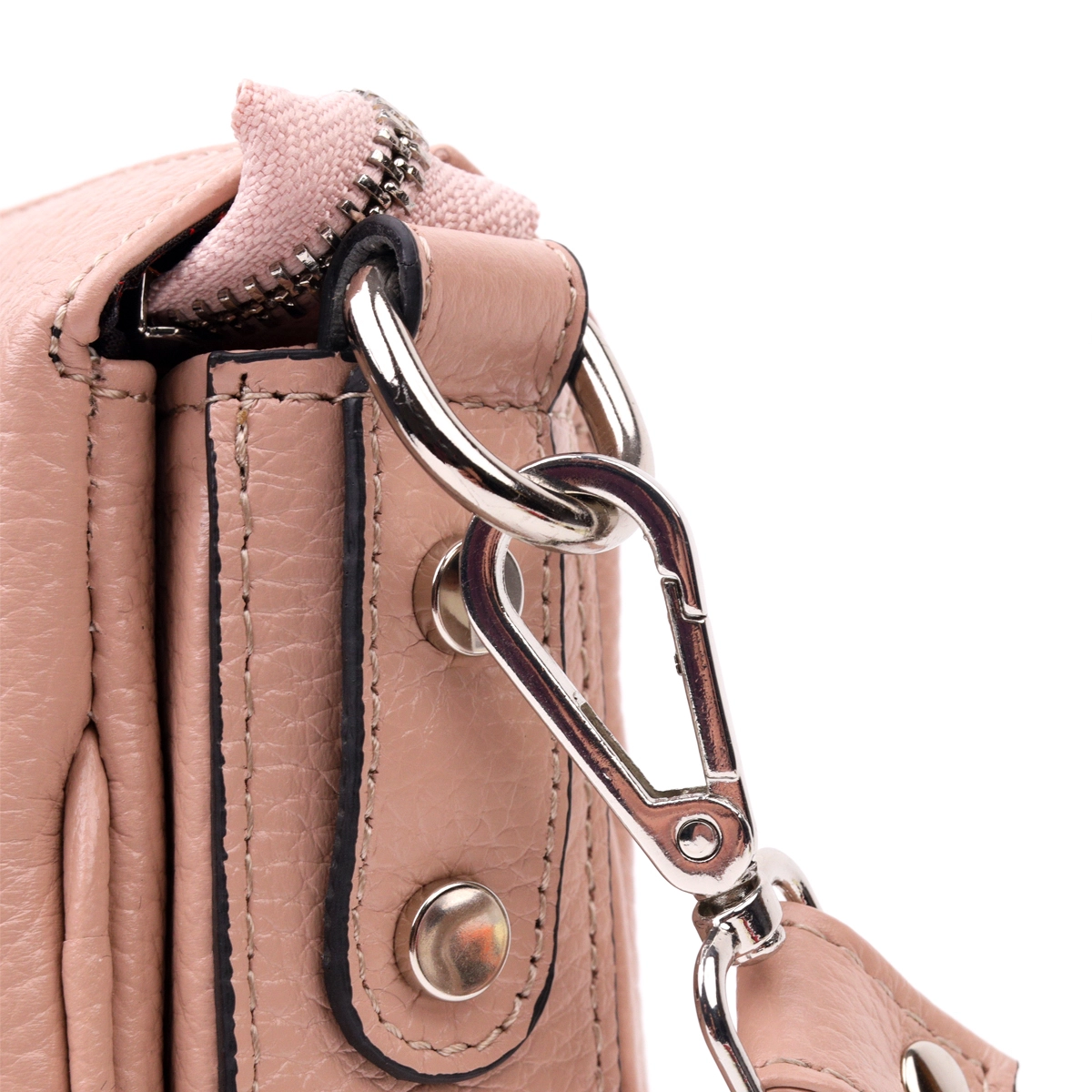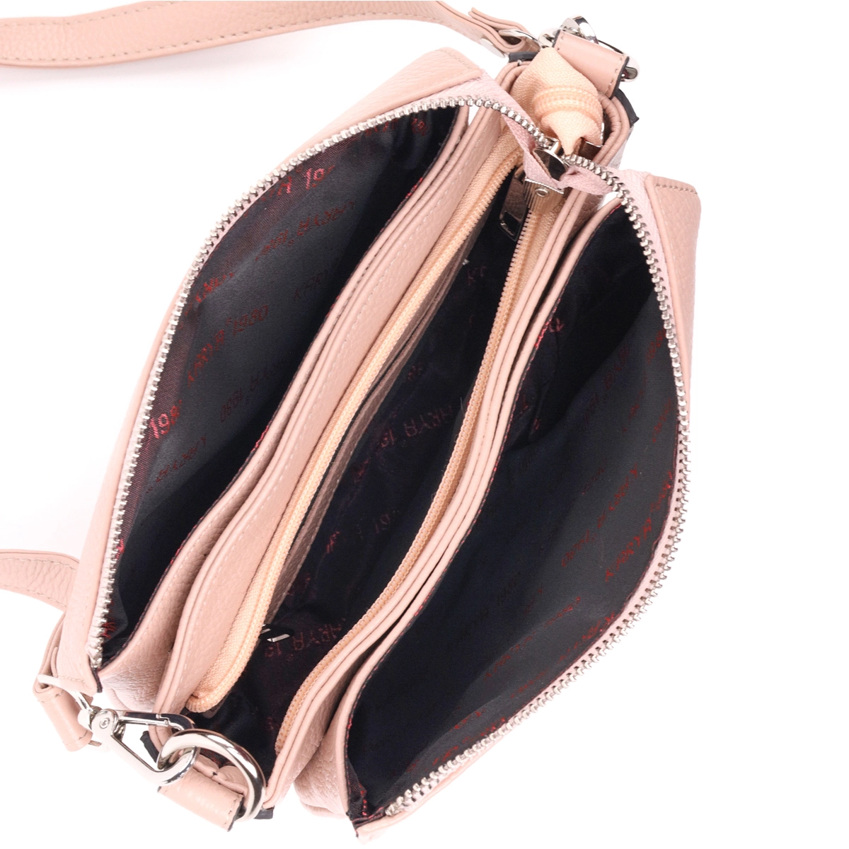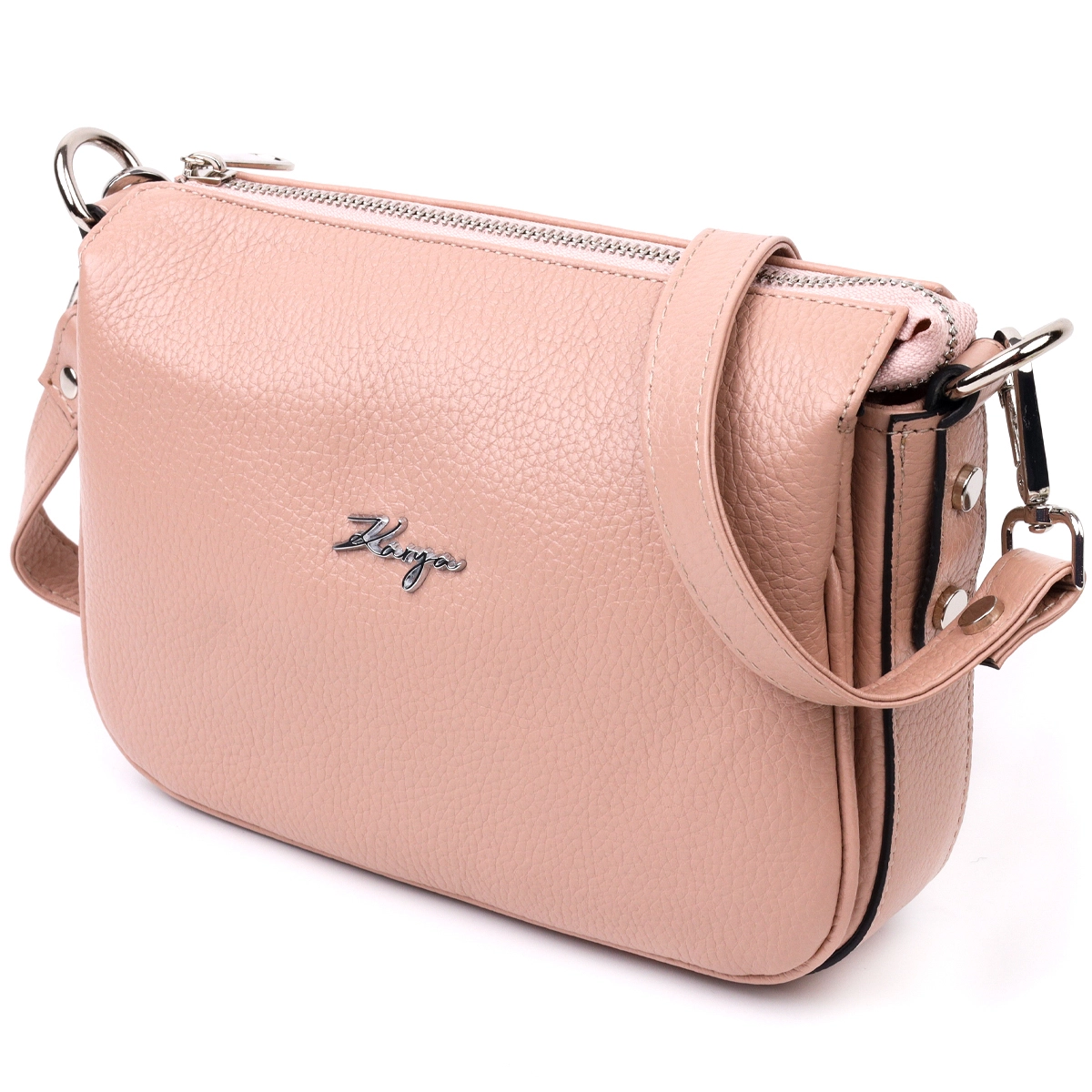 Очаровательная женская сумка небольшого размера из натуральной кожи, в нежном пудровом цвете. Фурнитура серебряного цвета. Сумку удобно носить в руке, на плече или через плечо. Сумка упакована в фирменный текстильный чехол Karya. Сумка из натуральной кожи всегда будет отличным подарком любой женщине.
