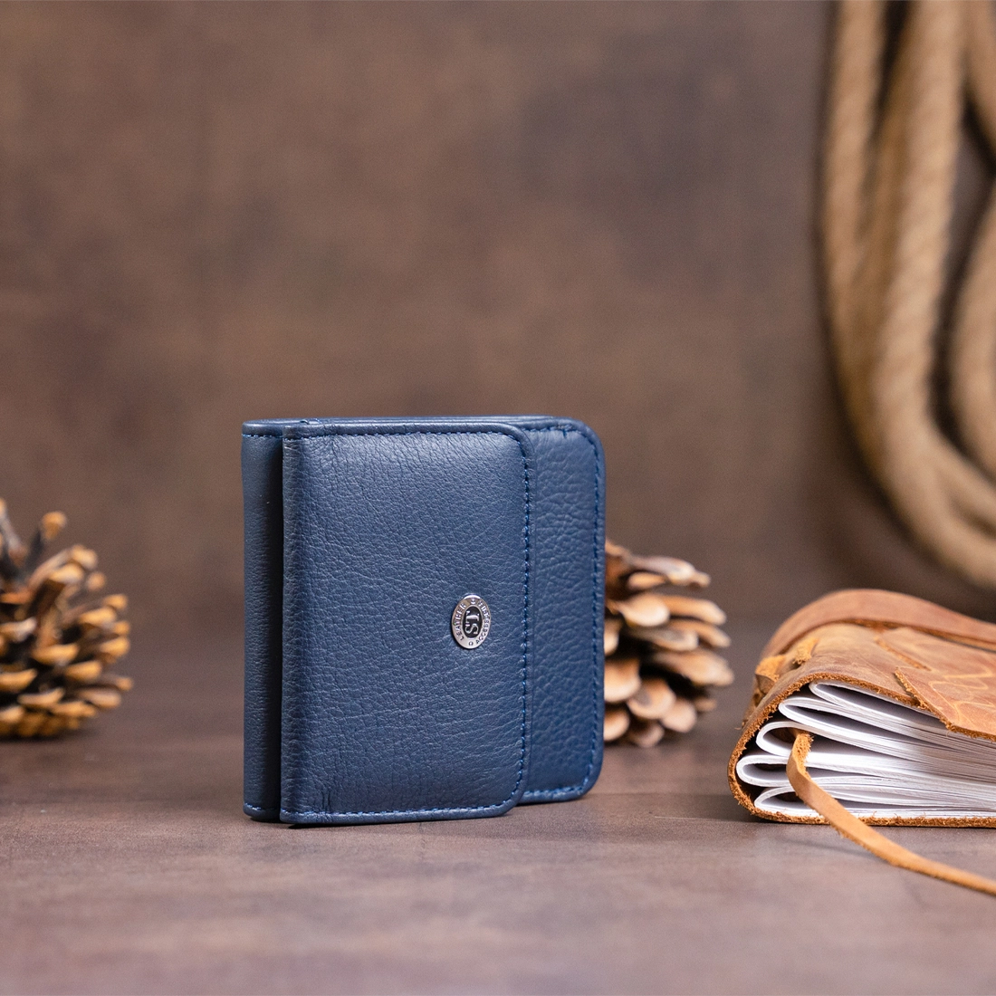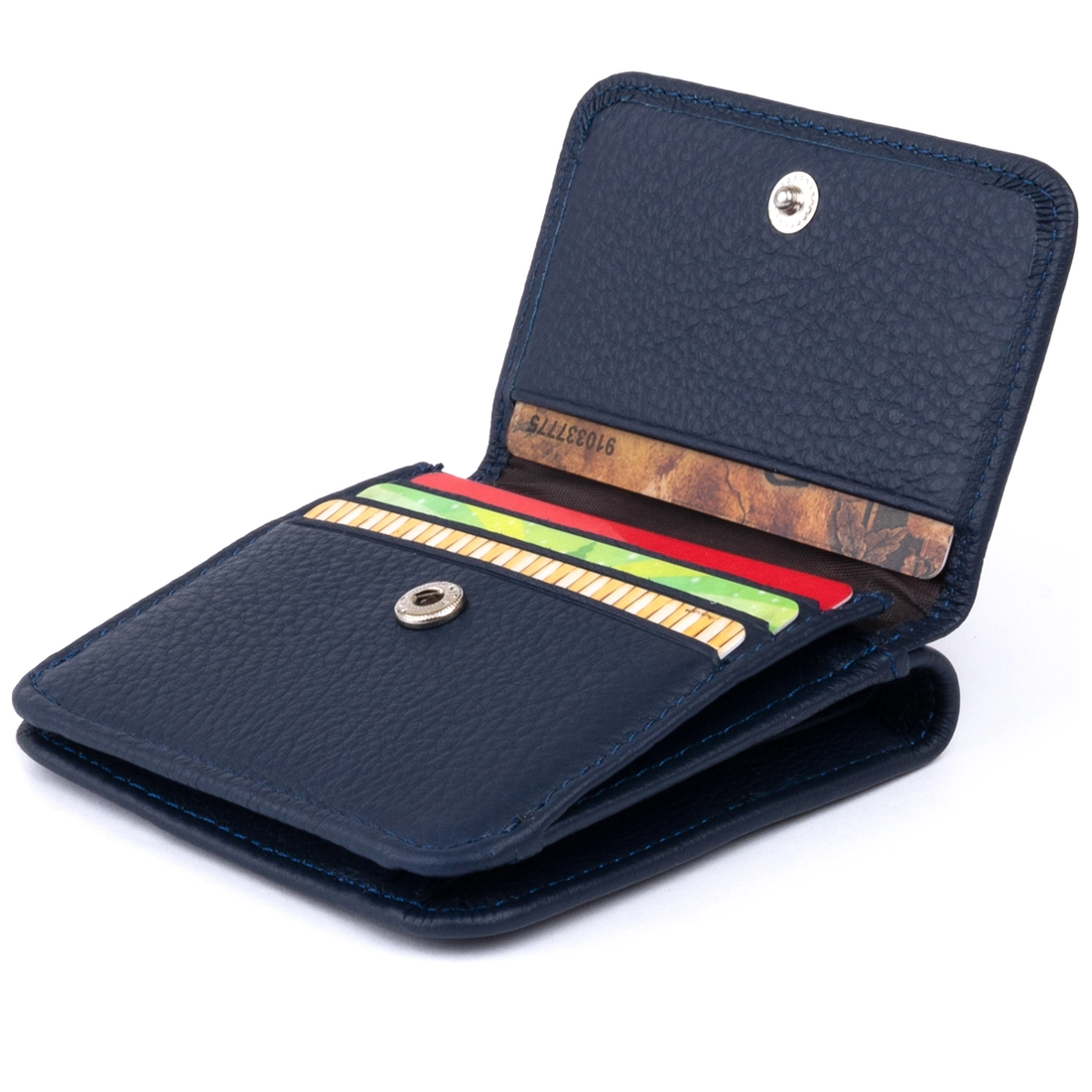 Маленький компактный кошелек темного-синего универсального цвета.