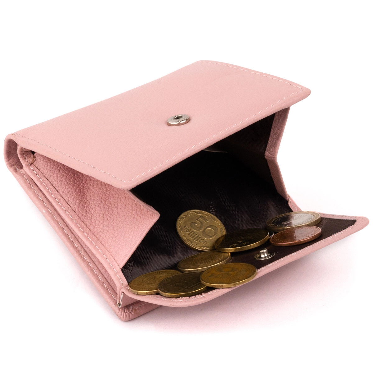 Закрывается кошелек на кнопку и выглядит в виде книжки. Кошелек