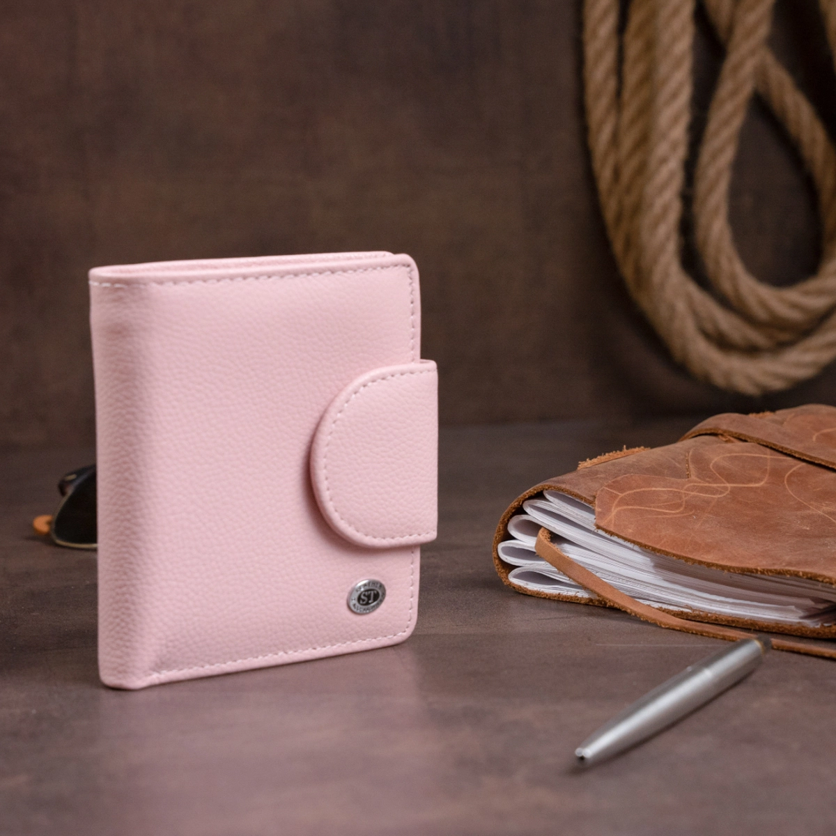 Компактный женский кошелек нежного розового цвета. Придаст вам