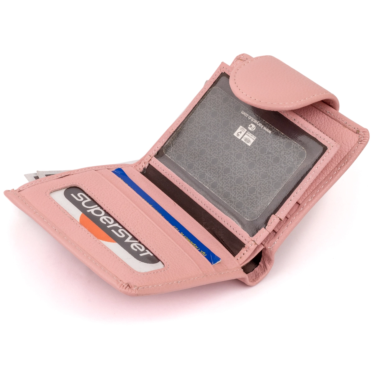 сумочку. Закрывается кошелек на кожаный хлястик с кнопкой.