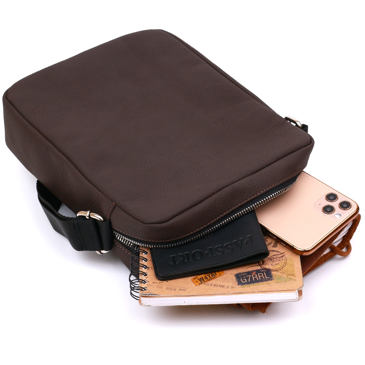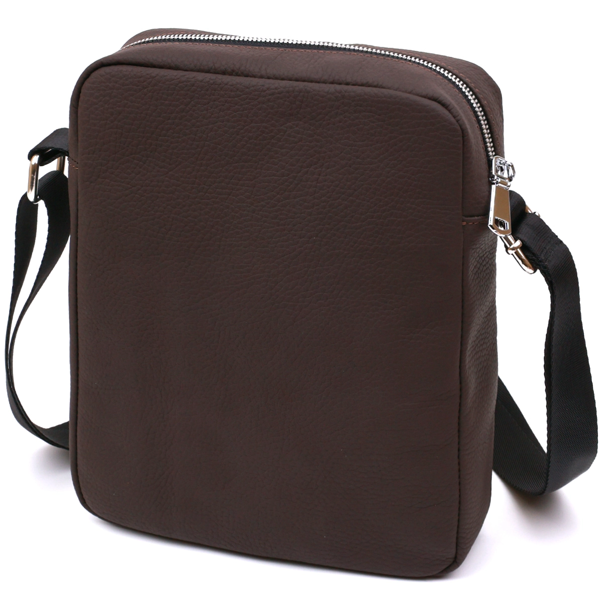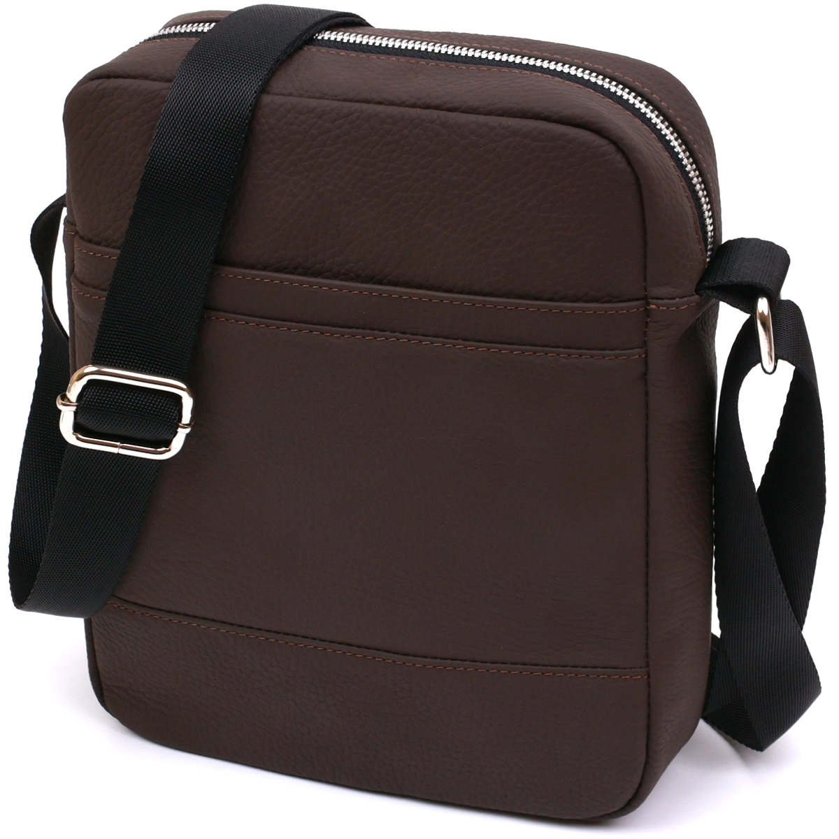 Практичная и стильная мужская сумка через плечо от украинского производителя. Выполнена данная модель из натуральной высокопрочной кожи с отличными эксплуатационными характеристиками. Внутри есть одно вместительное отделение и потайной карман на молнии, на внешней стороне присутствует карман на магните. Ремень сделан из прочного текстиля и регулируется по длине.