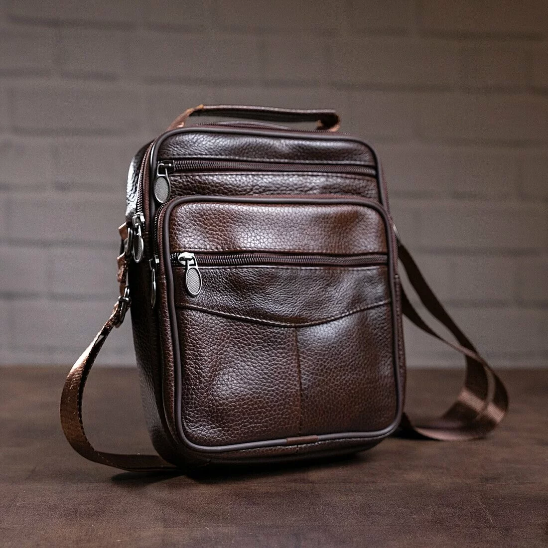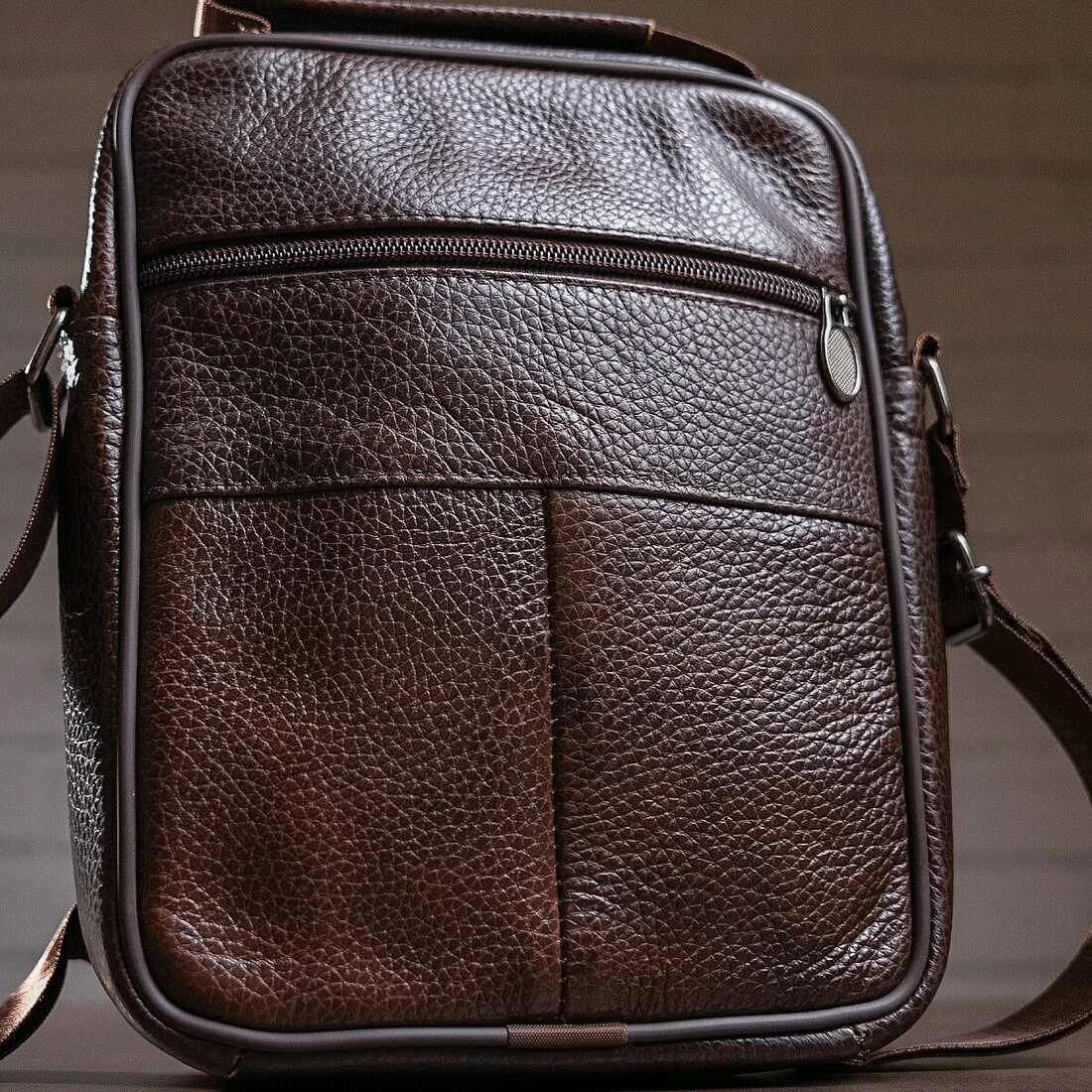 Качественная мужская сумка из натуральной кожи. Изделие выполнено из зернистой кожи коричневого цвета. Внутри аксессуара плотная текстильная подкладка коричневого цвета. Сумка будет вашим идеальным вариантом на каждый день. Модель очень удобная. Классический дизайн никогда не выйдет из моды. Такая сумка подойдет под любые вещи из вашего гардероба. Модель дополнена качественной фурнитурой в дизайн изделия.