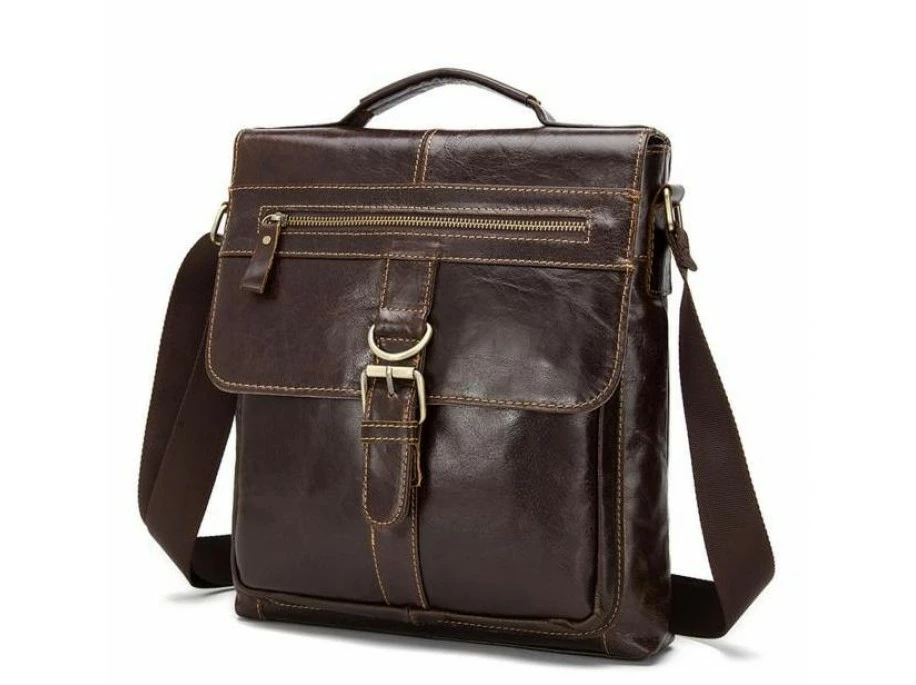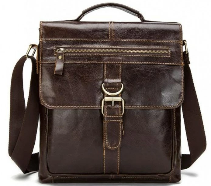 Отличная мужская кожаная сумка коричневого цвета. Аксессуар отличается стильным внешним видом и отличным функционалом. Сумку можно переносить через плечо или в руке, при помощи удобной кожаной ручки.