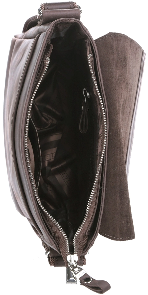 Благодаря компактным размерам, сумка практически невесома, но при этом аксессуар поместит в себе все необходимые вещи. Содержимое изделия надежно защищено клапаном и прочной металлической молнией, поэтому сумка не раскрывается самостоятельно, что сохранит Ваше спокойствие.