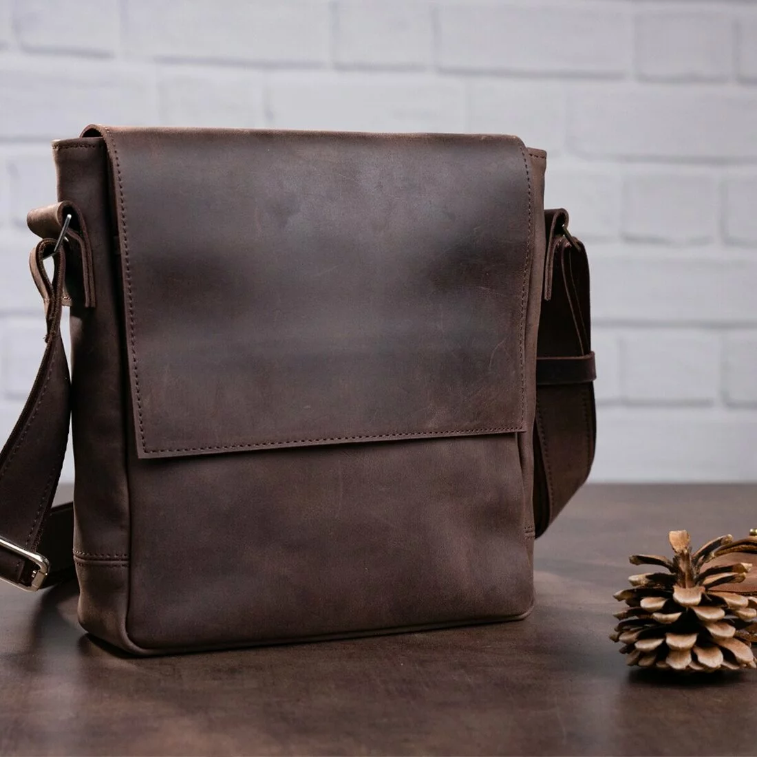 Быть модным и стильным гораздо проще, чем кажется на первый взгляд, если обзавестись таким привлекательным и продуманным аксессуаром, как эта высококачественная сумка. Аксессуар выполнен из натуральной винтажной кожи, для неё характерны потертости, искусственные царапины и неоднородность окраса. Из-за этого изделия из такой кожи дольше держат презентабельный внешний вид.