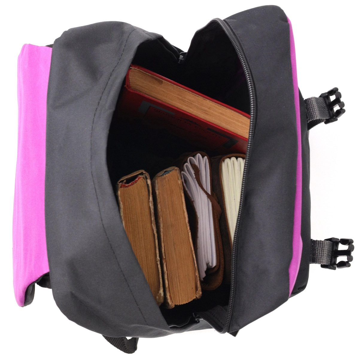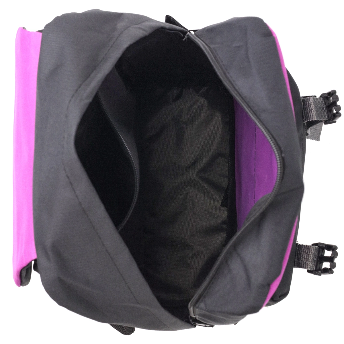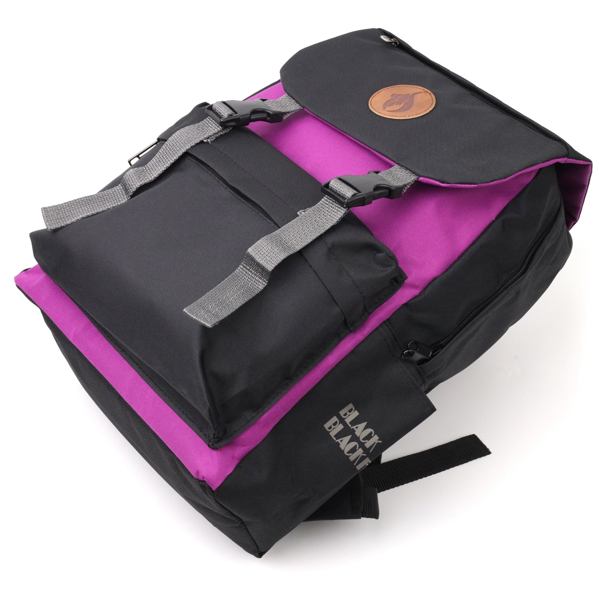 Вместительный рюкзак на одно большое отделение черного цвета, с фиолетовой яркой вставкой. Рюкзак очень вместительный. Изделие имеет очень практичный функционал. Рюкзак подойдет для путешествий и командировок, а также для городских прогулок. Несмотря на свой размер рюкзак не тяжелый. Закрывается рюкзак на молнию и фастексы, фурнитура очень качественная. Текстильный рюкзак - бюджетное решение для вашего комфорта.