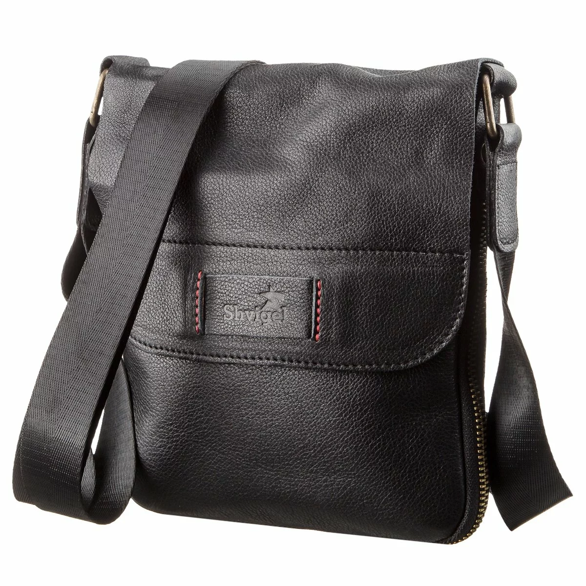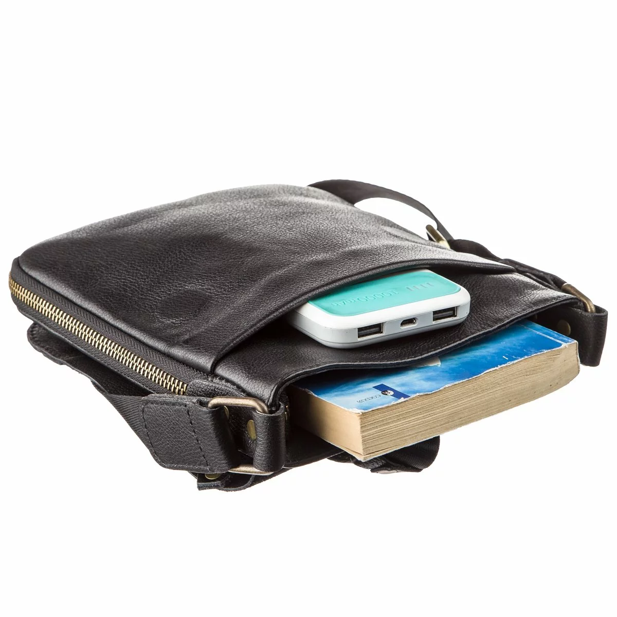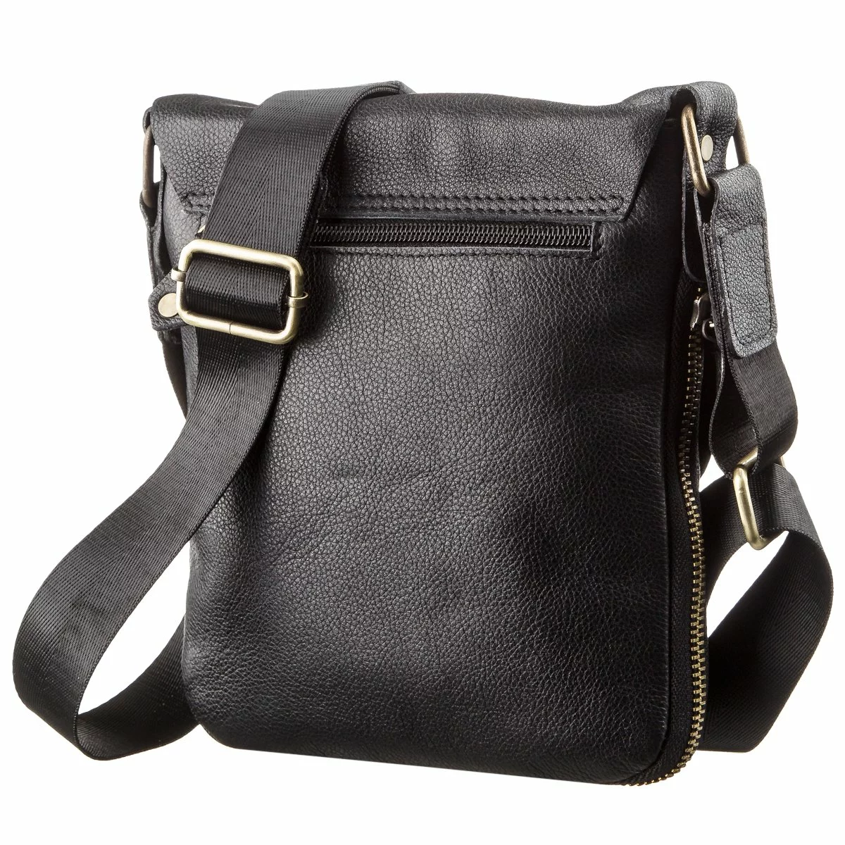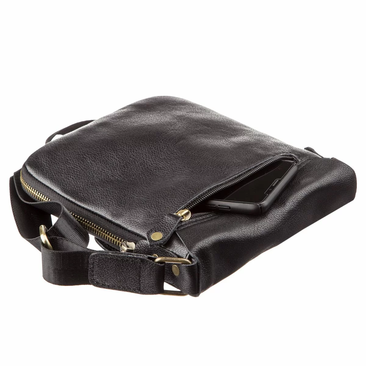 Мужская кожаная черная сумка компактного размера. Особенностью
