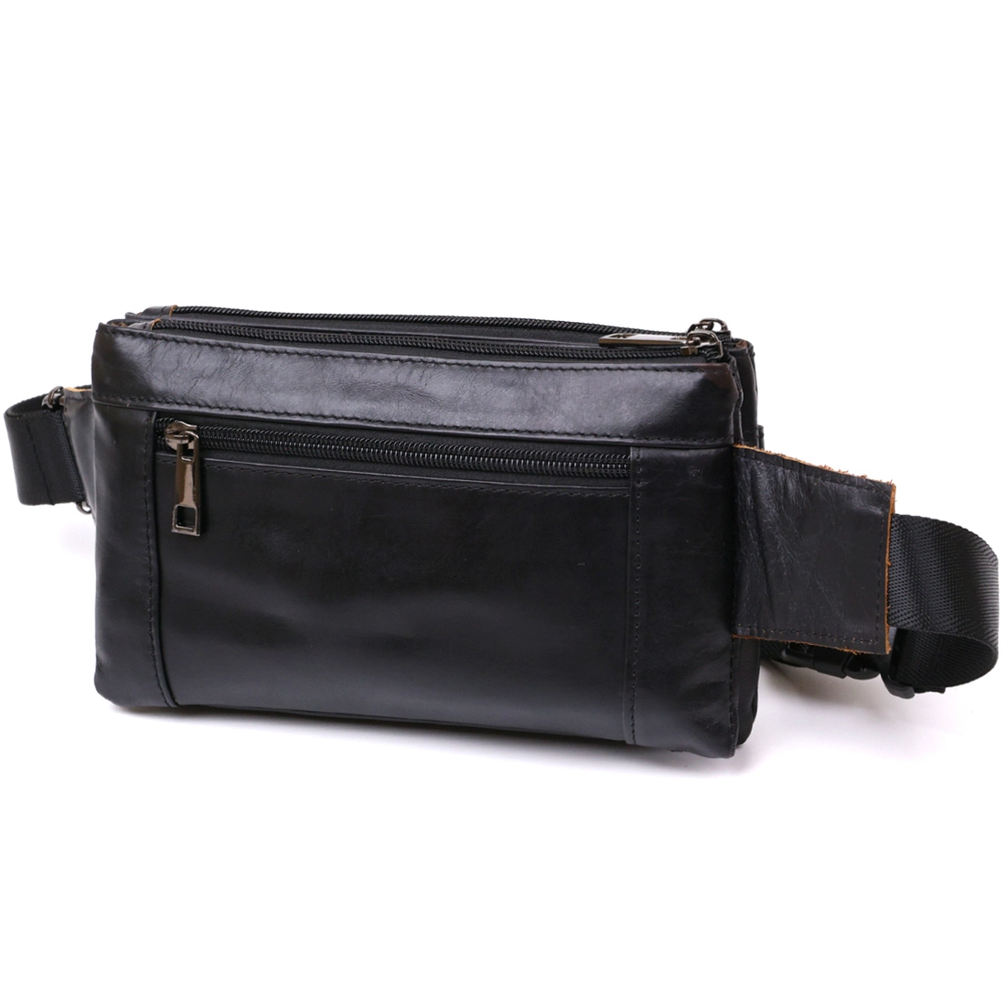 Небольшая, но практичная сумка на пояс из качественной кожи с отменными характеристиками эксплуатации. Выполнено изделие в универсальном черном цвете и имеет гладкую фактуру. Вас порадуют просторные отделения и удобные карманы. Ремень выполнен из прочного текстиля и регулируется по длине. Такая сумка просто незаменима для всех ценителей лаконичных и негромоздких изделий.