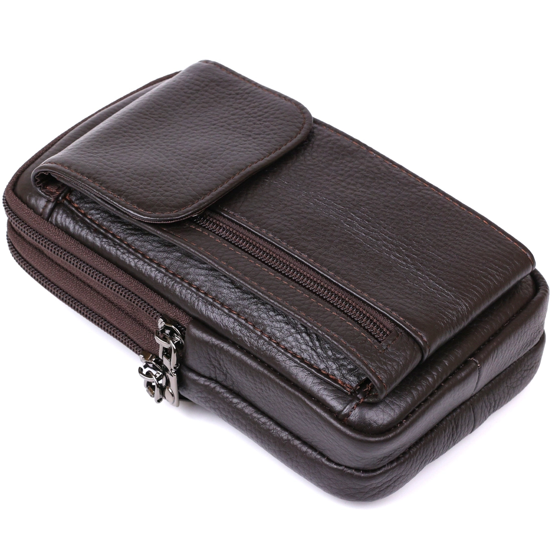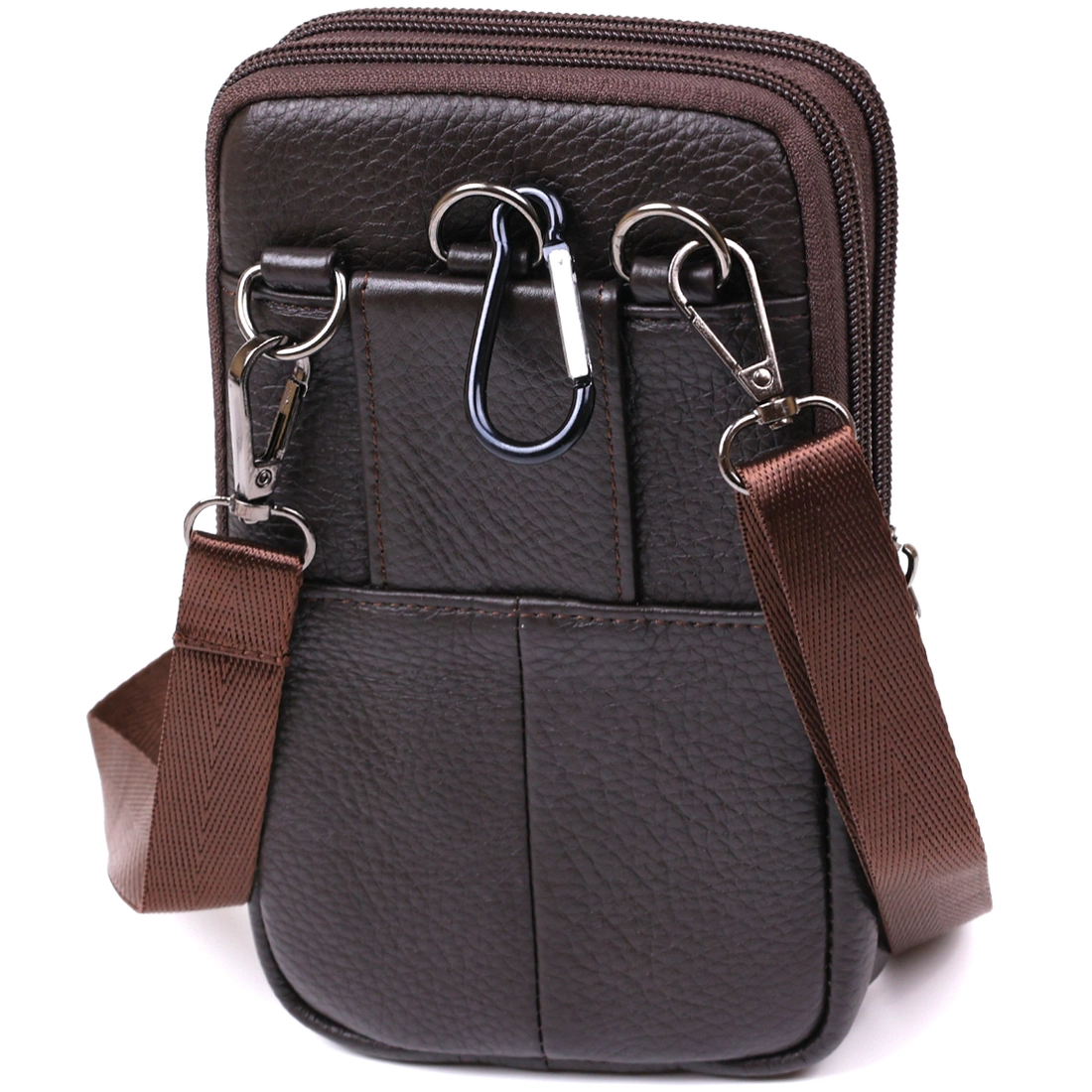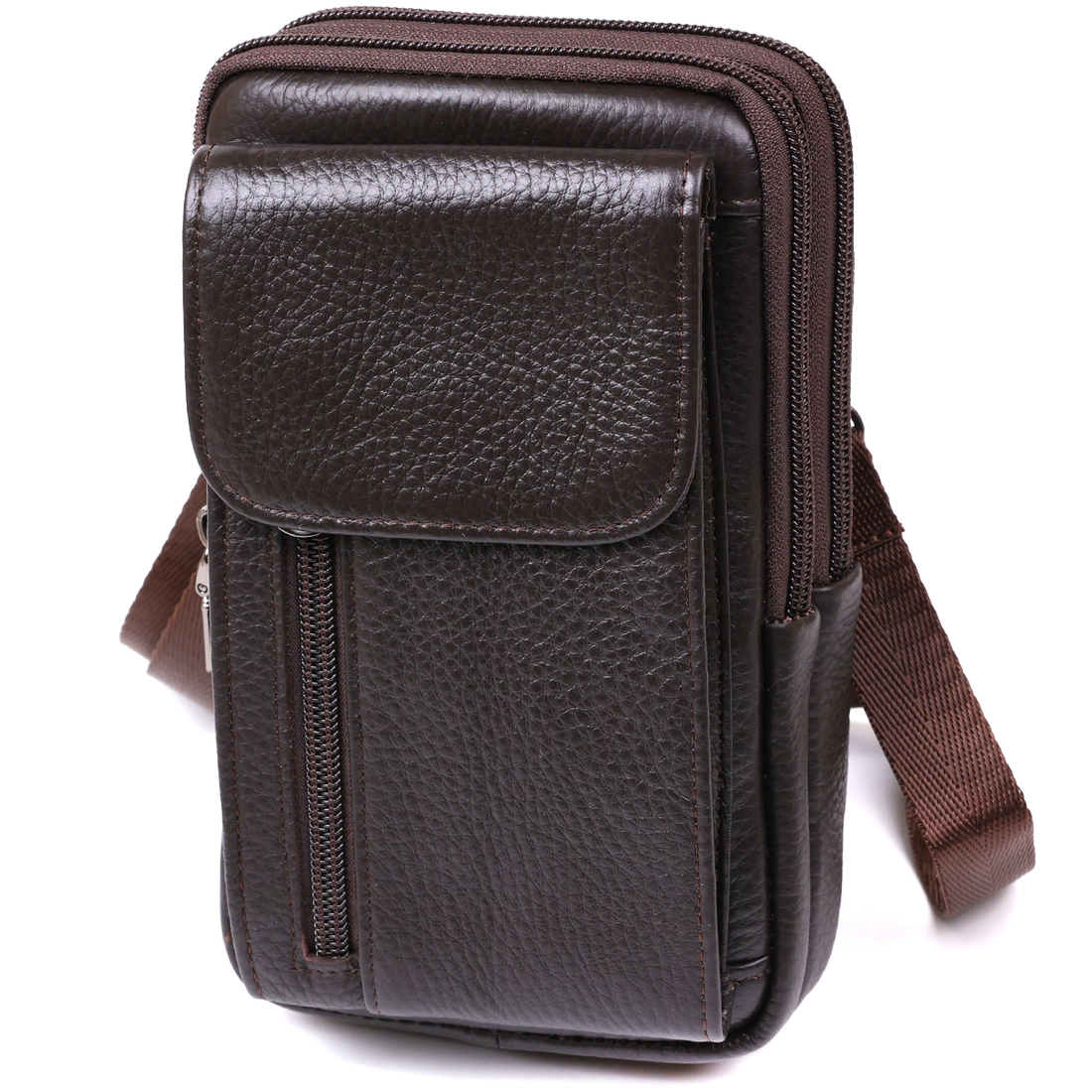Небольшая мужская сумка на пояс из натуральной высококачественной кожи с приятной на ощупь зернистой фактурой. Имеет два основных отделения на молнии и накладной карман на магните. Данную сумку можно носить как на поясе, так и на плече. Такой вариант обязательно понравится мужчинам, которые любят все компактное и лаконичное.