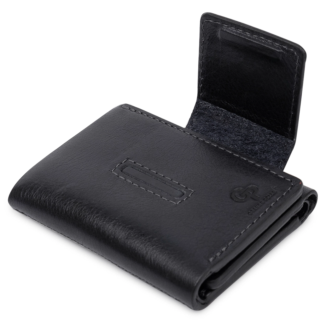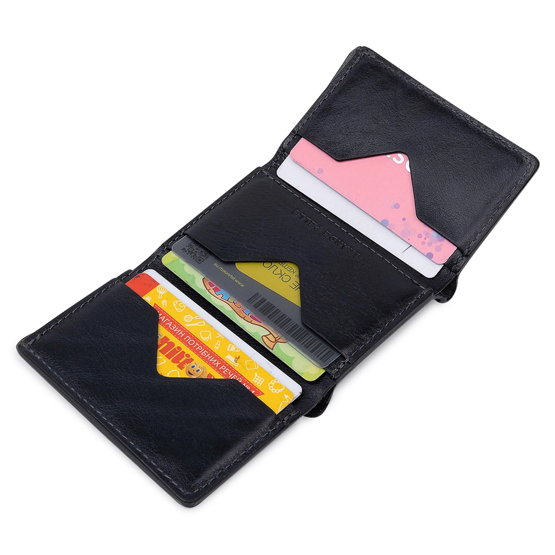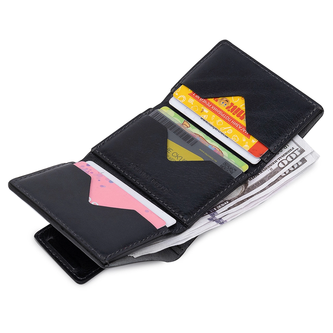 Компактное мужское портмоне в универсальном черном цвете от украинского производителя. Выполнено изделие из натуральной высококачественной кожи, которая устойчива к износу. Внутри есть вместительное отделение для купюр и карманы для различных карт и визиток. Закрывается на удобный хлястик с магнитом. Упакован аксессуар в фирменный чехол.