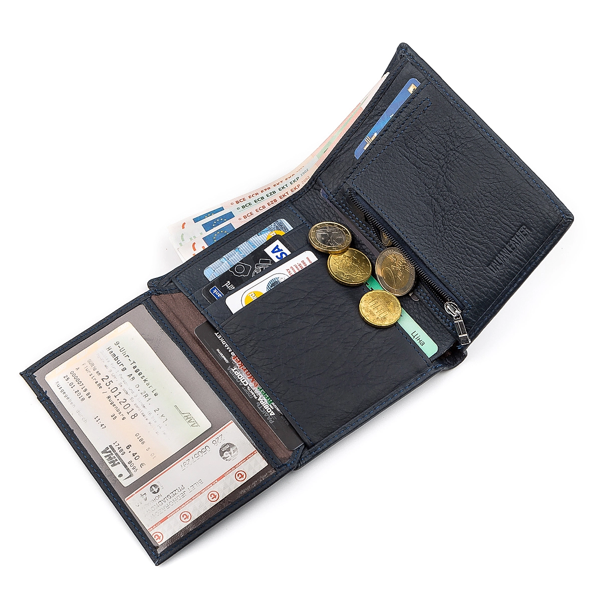 1 отделение на молнии для банкнот;