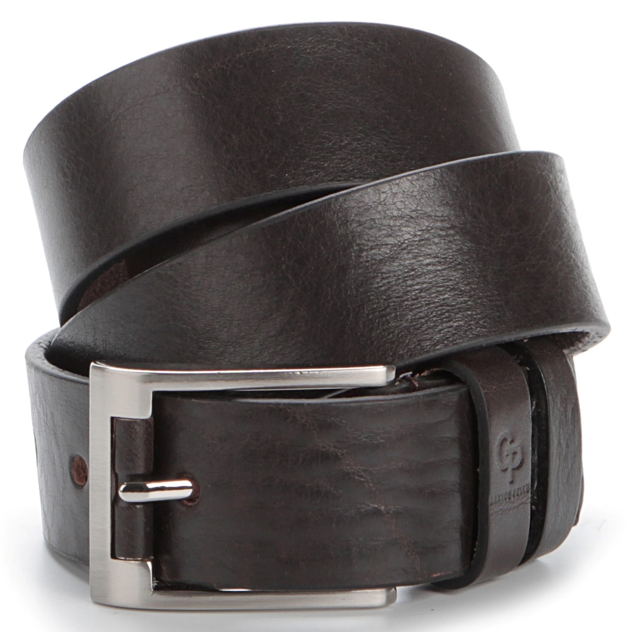 Великолепный ремень из натуральной кожи отличного качества универсален - Вы можете комбинировать его как с брюками, так и с джинсами. Полотно ремня имеет винтажную фактуру кожи, за счет чего аксессуар имеет оригинальный вид. Если Вы хотите сделать хороший подарок мужчине, то такой ремень станет отличным выбором, поскольку он не только красив, но и бесподобен в своем качестве и практичности.