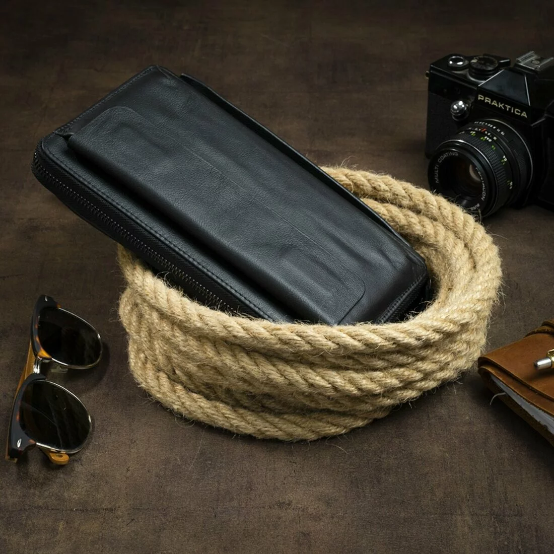 ремешок для носки на руке, что очень удобно в использовании. Кожа