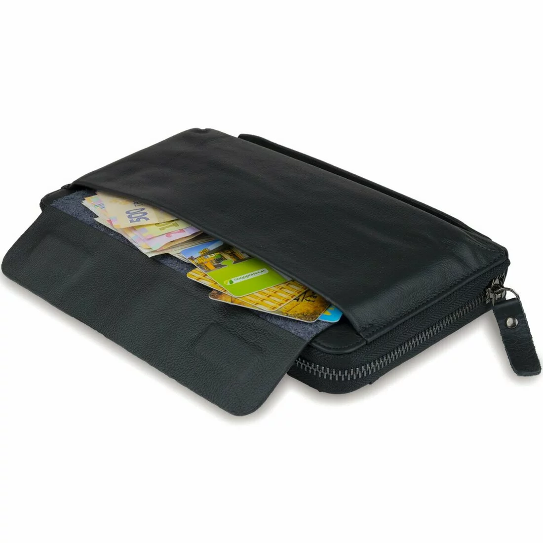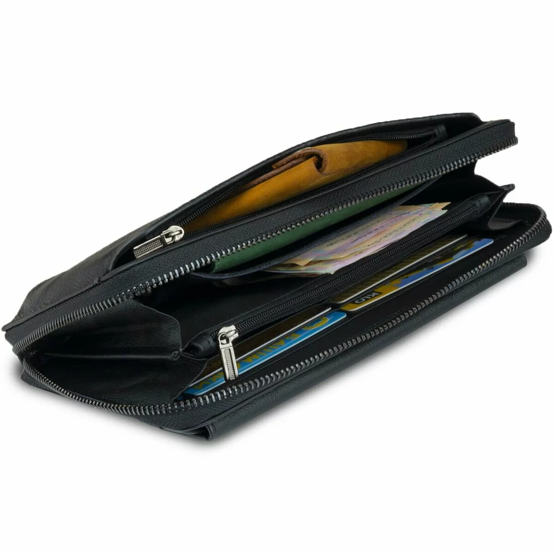 - 2 отсека для купюр с перегородкой монетницей на молнии;