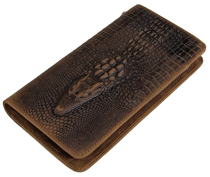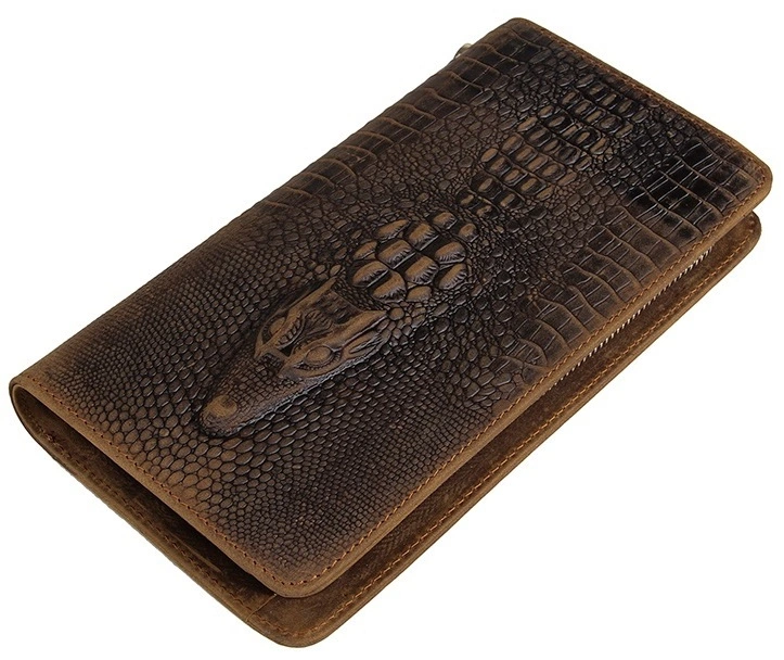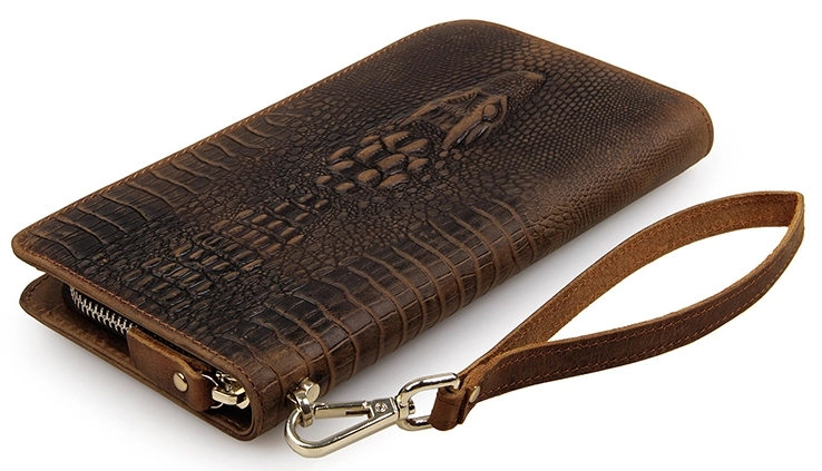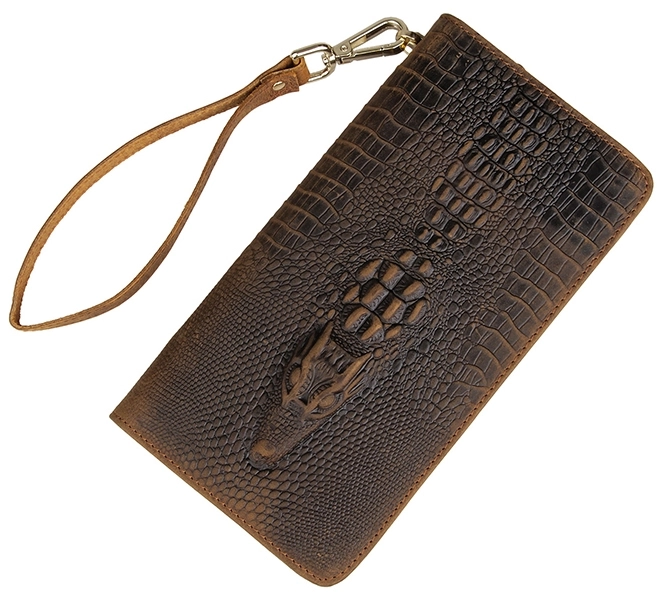 Современный мужской кожаный кошелек-клатч из натуральной высококачественной кожи с фактурой под крокодила. Аксессуар закрывается при помощи молнии. Носиться барсетка в реке или на запястье при помощи удобного, кожаного ремня-петли. Аксессуар упакован в текстильный пылезащитный мешочек.