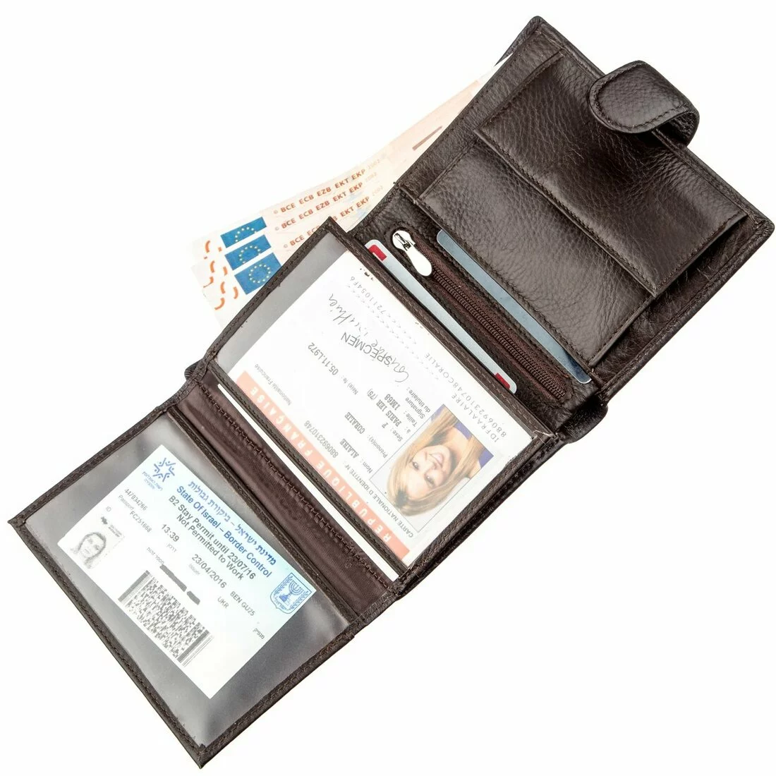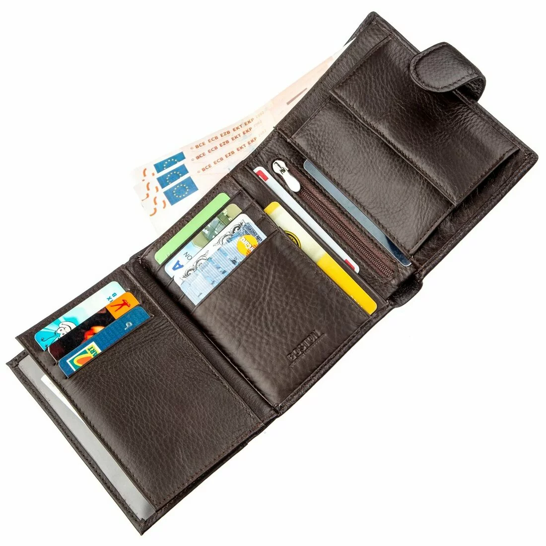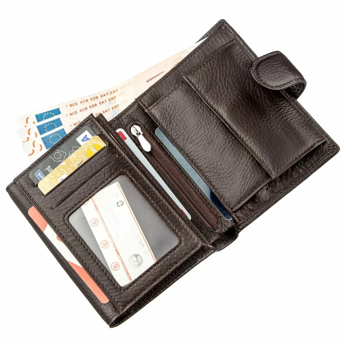 Кожаный кошелек с монетницей для солидного и уверенного в себе мужчины. Выполнен из натуральной кожи с зернистой матовой фактурой. Цвет насыщенный коричневый. Имеет много достоинств в виде большого количества различных отделений для купюр, пластиковых карт и визиток, фото и документов. Монетница закрывается на кнопку, как и сам кошелек. Такой бумажник очень практичный и удобен в использовании. Вы или тот человек, которому Вы преподнесёте такой подарок, будет очень доволен. Упаковано изделие в картонную белую коробку с фирменным логотипом.