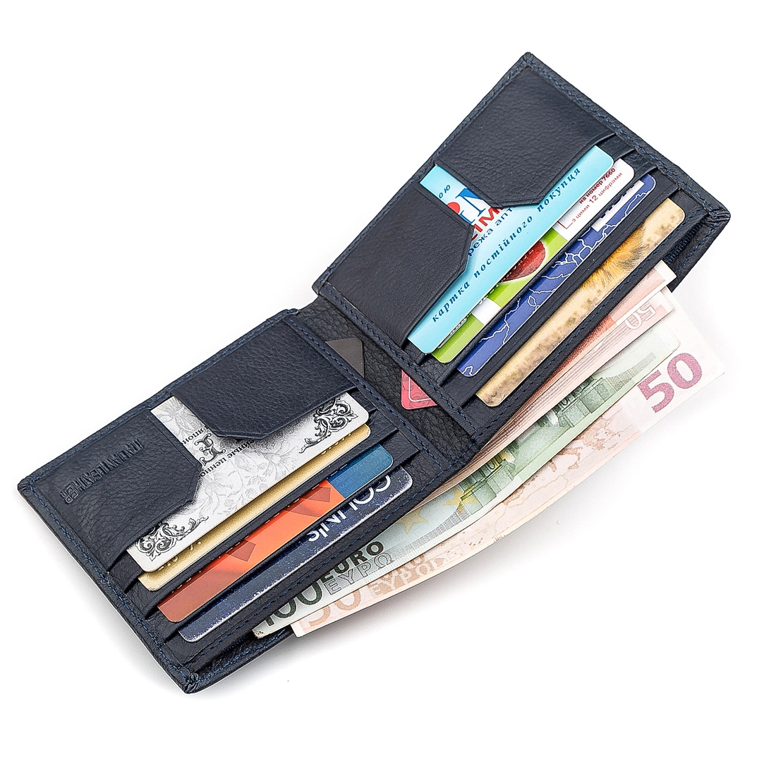 Данная модель мужского кошелька отличается отсутствием монетницы и