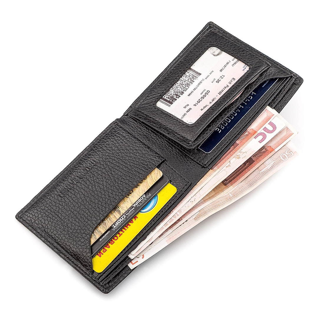 двумя отделениями для купюр и ячейками для банковских карт. Также