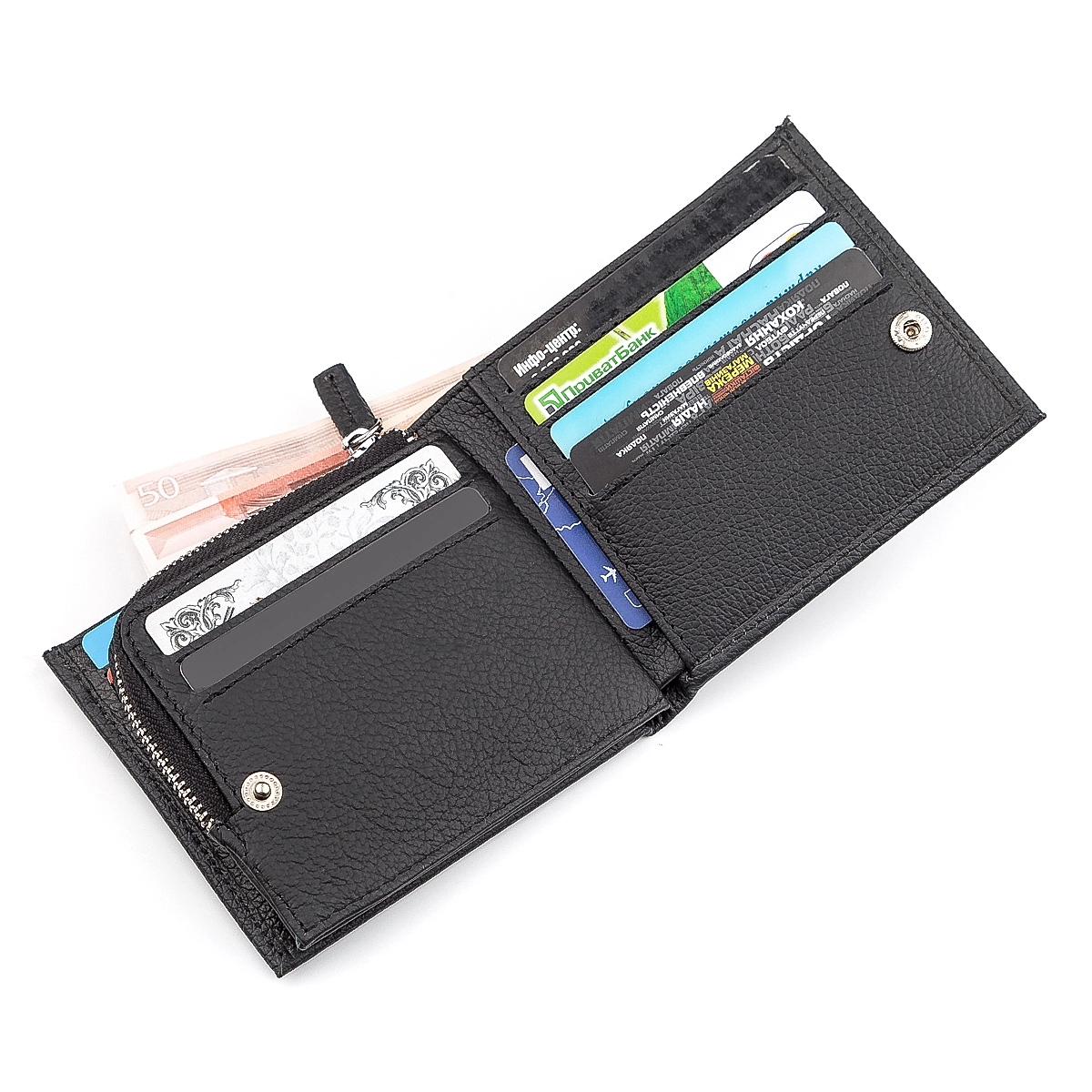 Классический стиль данной модели предусматривает фиксацию клапана на специальной кнопке. Природная фактура натуральной говяжьей кожи не оставит равнодушной ни одну модницу. Во внутреннем функционале есть несколько отделений для купюр, одно из которых дополнено молнией и 10 слотов для кредиток или визитных карточек. Также, имеется отделение на змейке и окошко, где можно раcположить права или удостоверение личности. Кошелек предлагается в подарочной упаковке от производителя.