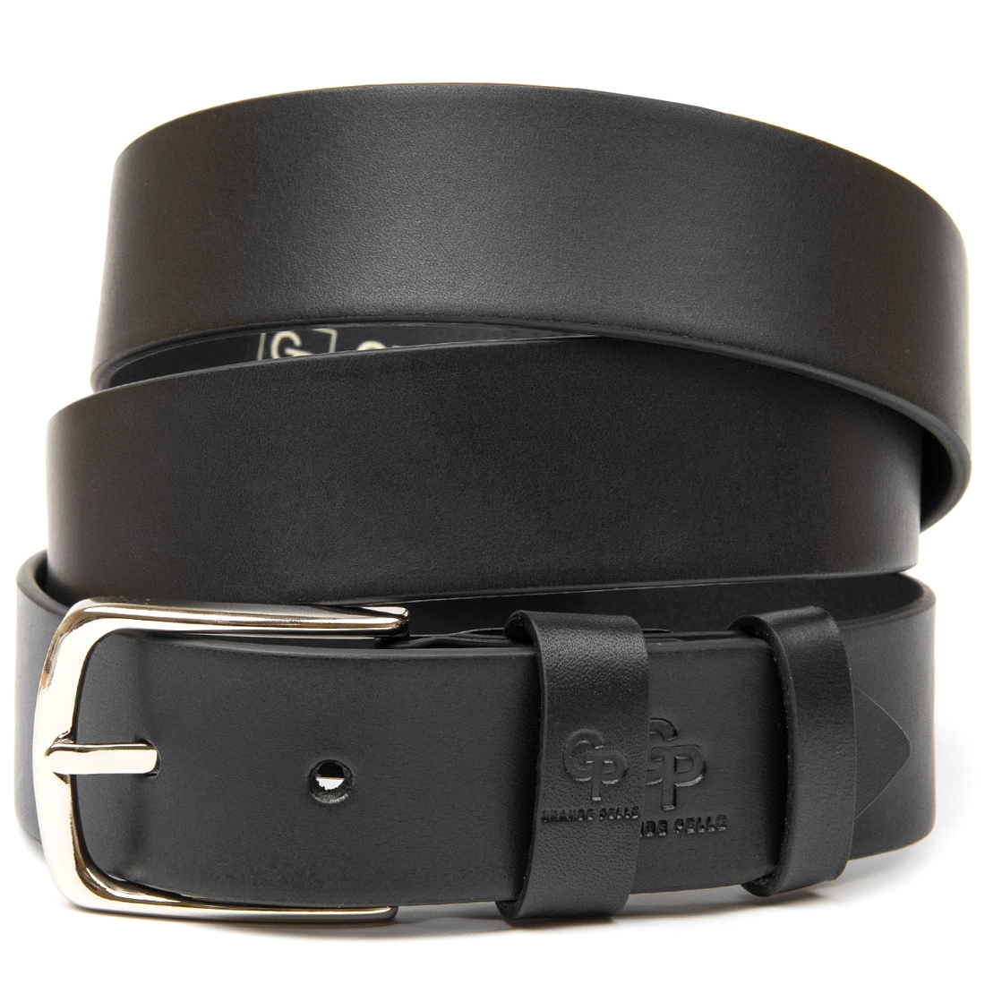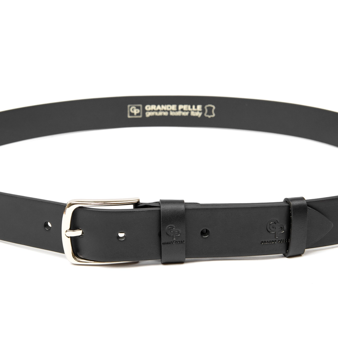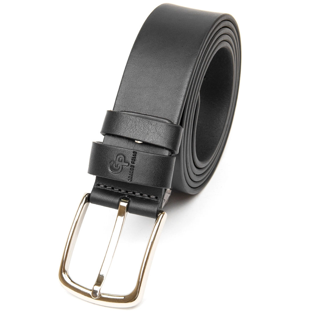 Мужской ремень отличного качества исполнения и материалов. Выполнен в универсальном черном цвете, а поэтому подойдет под любые брюки. Пряжка металлическая в серебреном цвете. Имеет простой и невычурный дизайн.