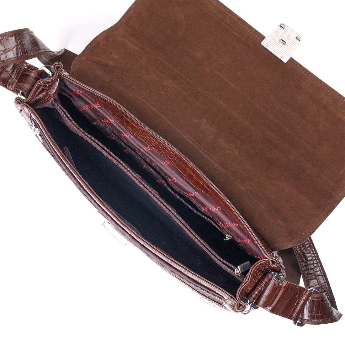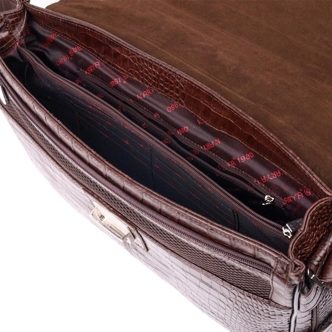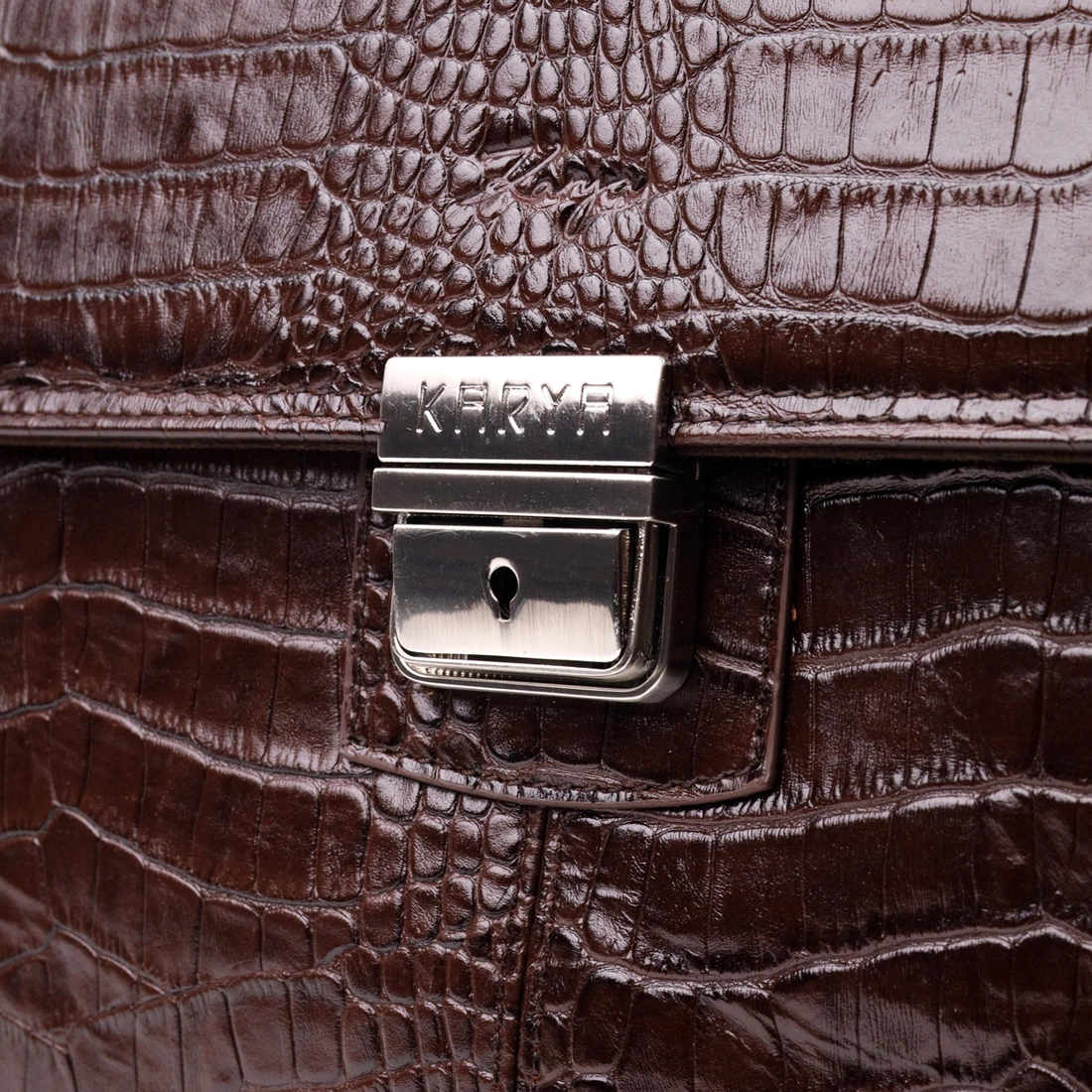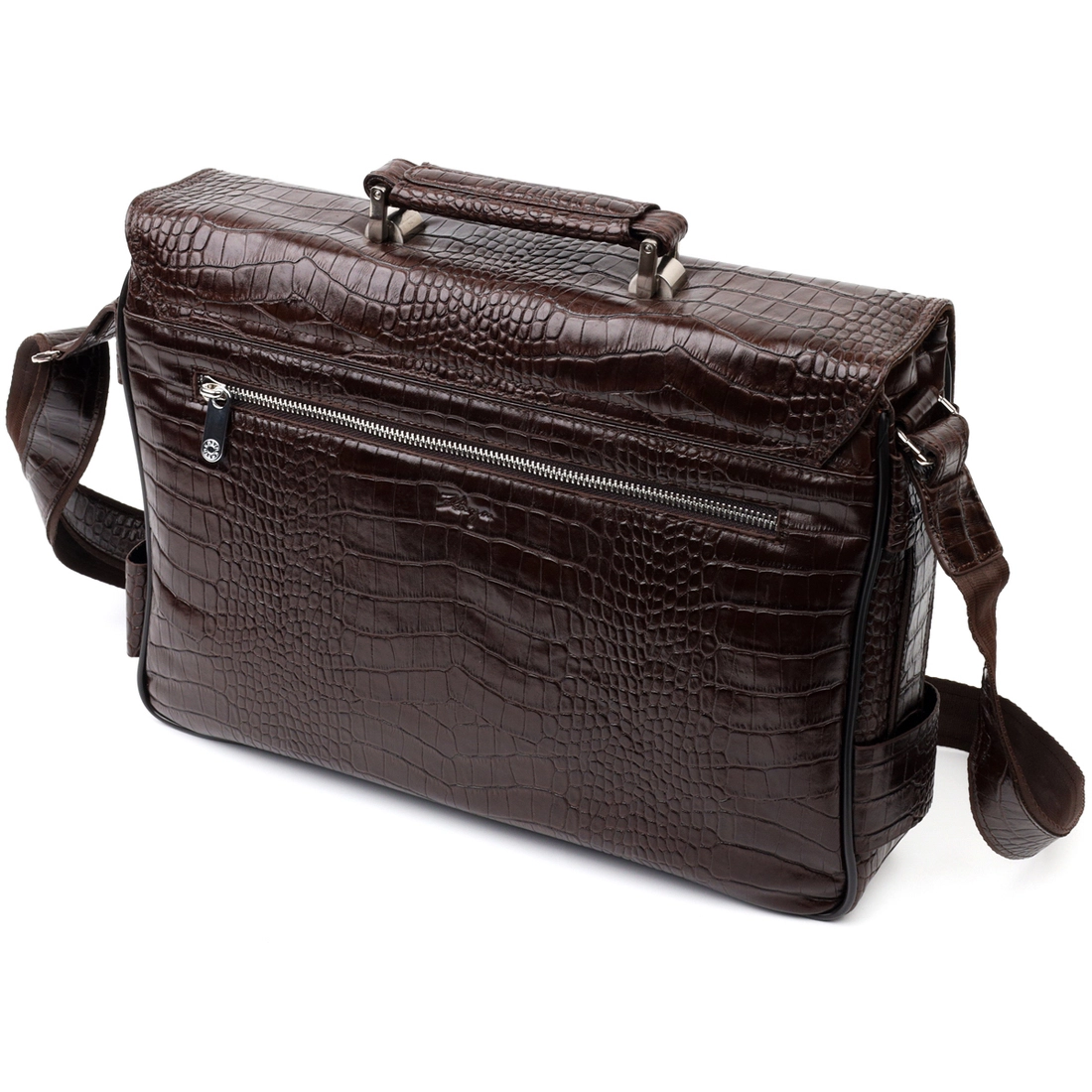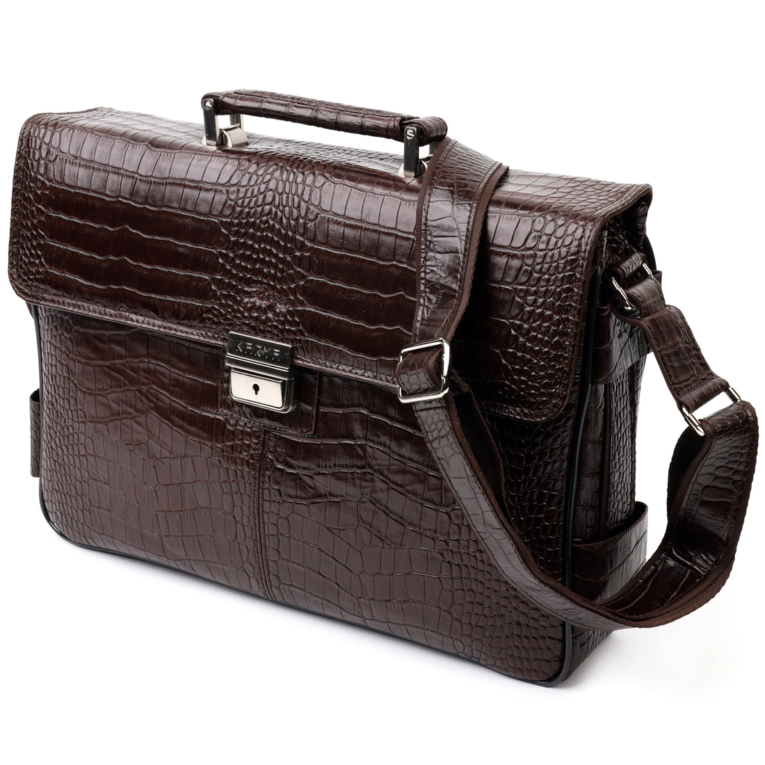 Практичный портфель из натуральной кожи с тиснением под крокодила,