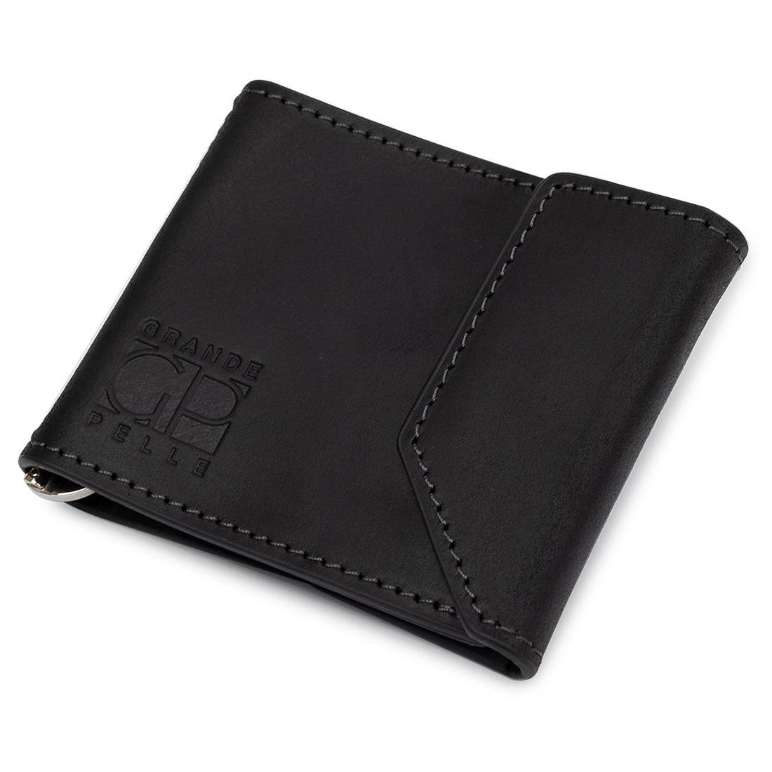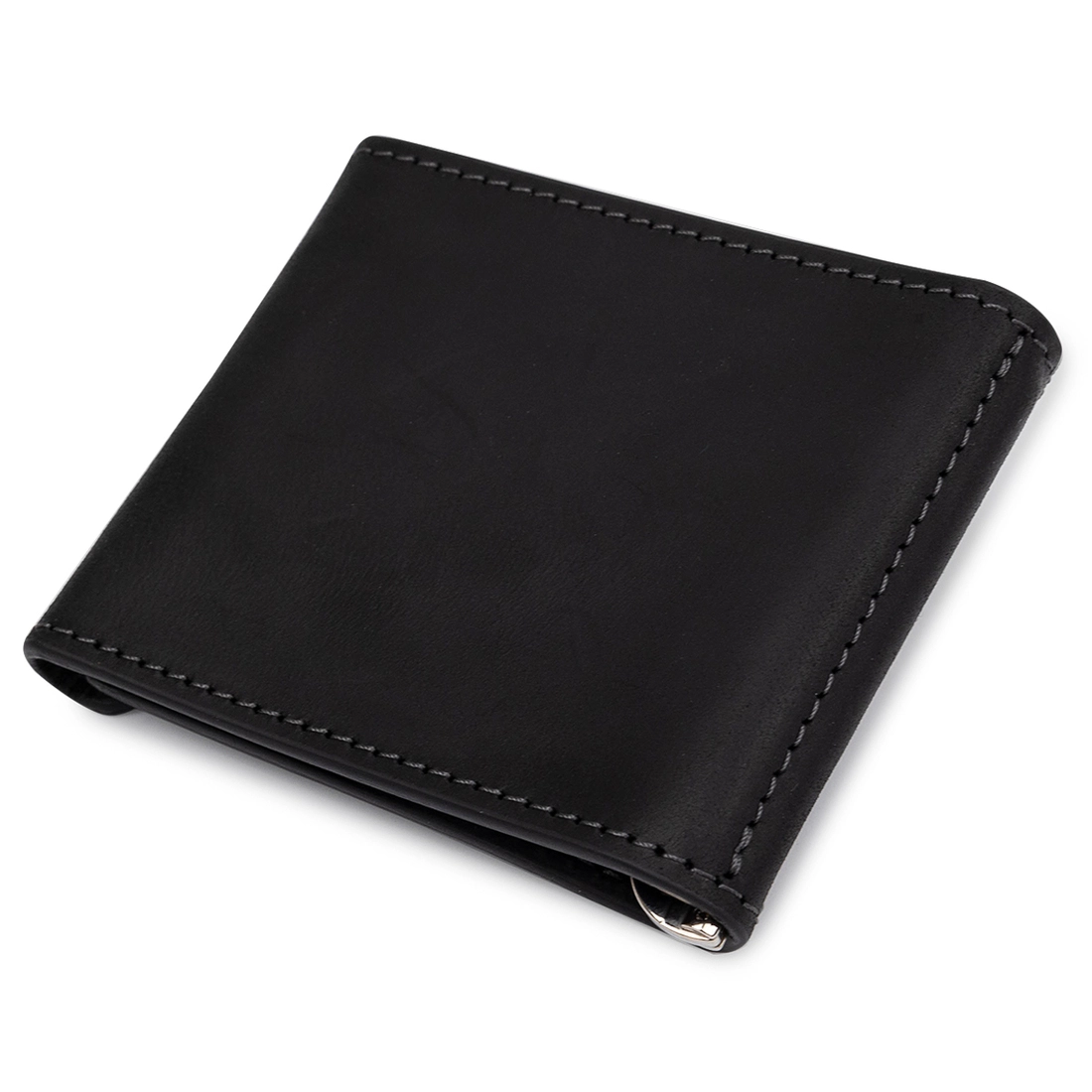 Компактный мужской зажим для денег для тех, кто не любит большие громоздкие кошельки. Имеет красивую матовую фактуру и универсальный черный цвет. Внутри кроме металлического зажима присутствуют два вместительных кармана для карт. Выполнено изделия из натуральной высококлассной кожи.