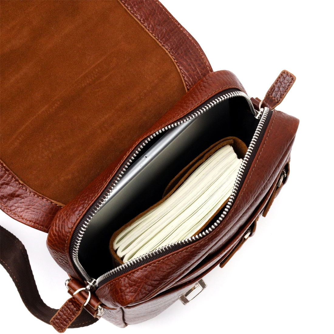 - плечевой ремень изготовлен из текстиля с кожаной вставкой;