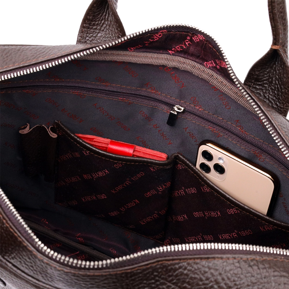 - две кожаные ручки для ношения в руке;