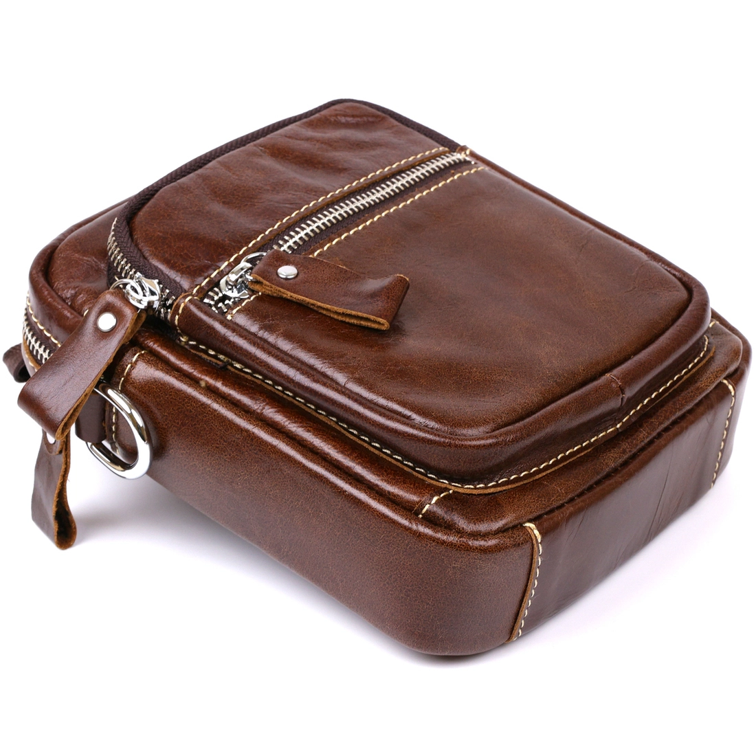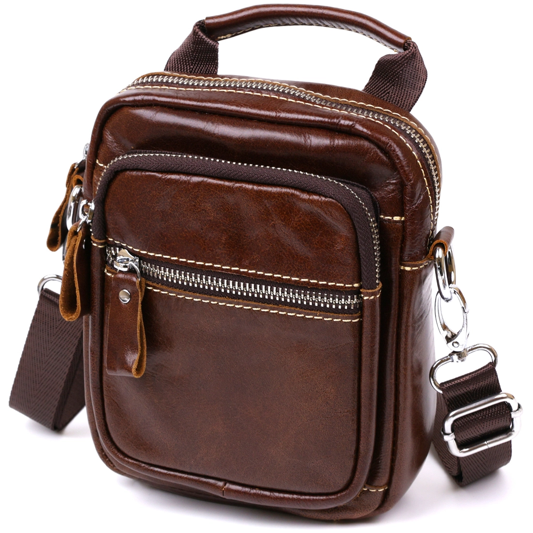 Небольшая мужская сумка из гладкой натуральной кожи высокого