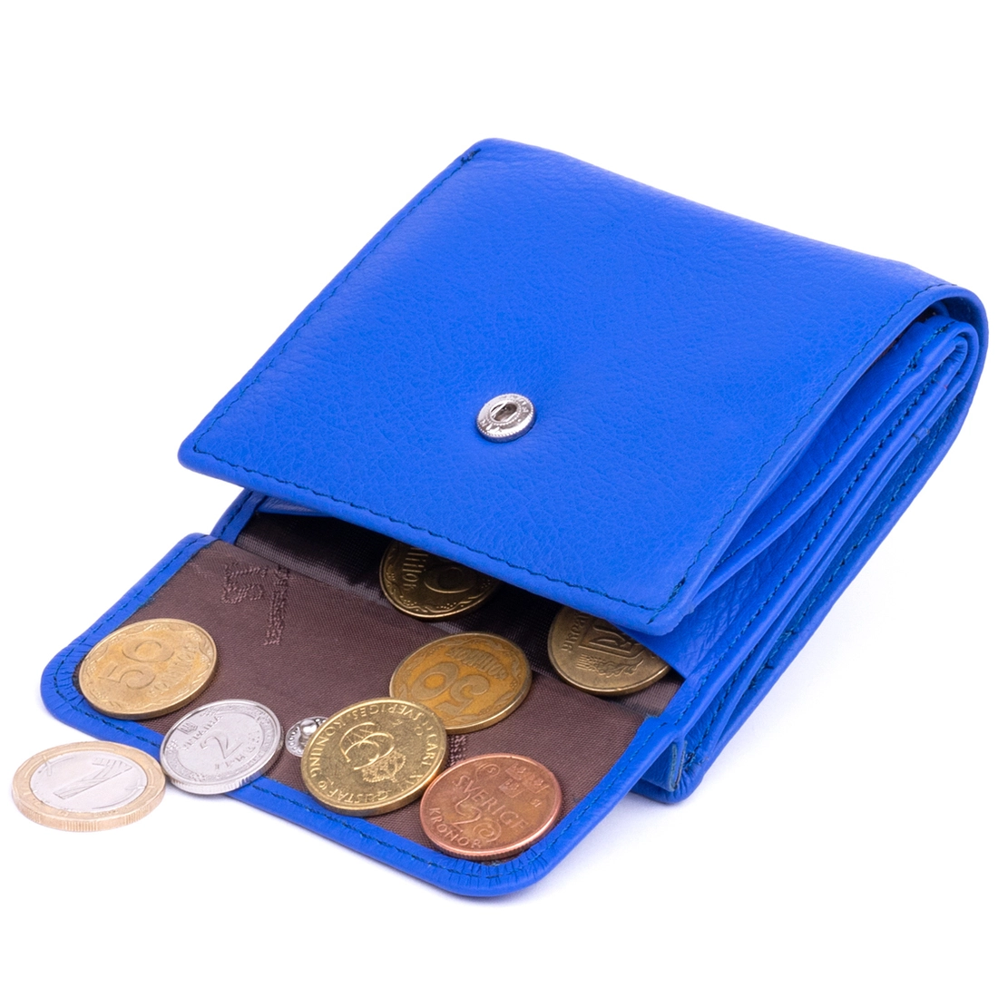 - женское портмоне из натуральной кожи на кнопке;