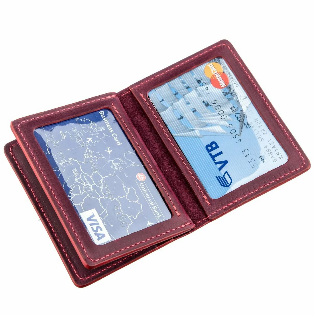 для кредиток и два отделения для прав под прозрачной пленкой.