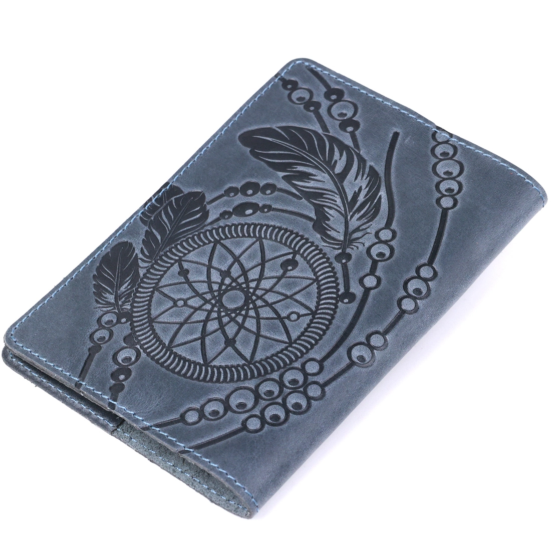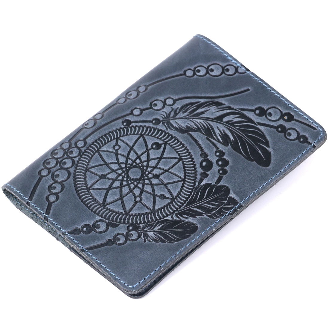 Дизайнерская обложка на паспорт из натуральной кожи. Рисунок на лицевой стороне изделия сделан в стиле индейского талисмана Ловца Снов (dreamcatcher). Внутри обложки Вы найдете тесненный логотип компании-производителя SHVIGEL. Обложка на паспорт поставляется в фирменном текстильном мешочке.