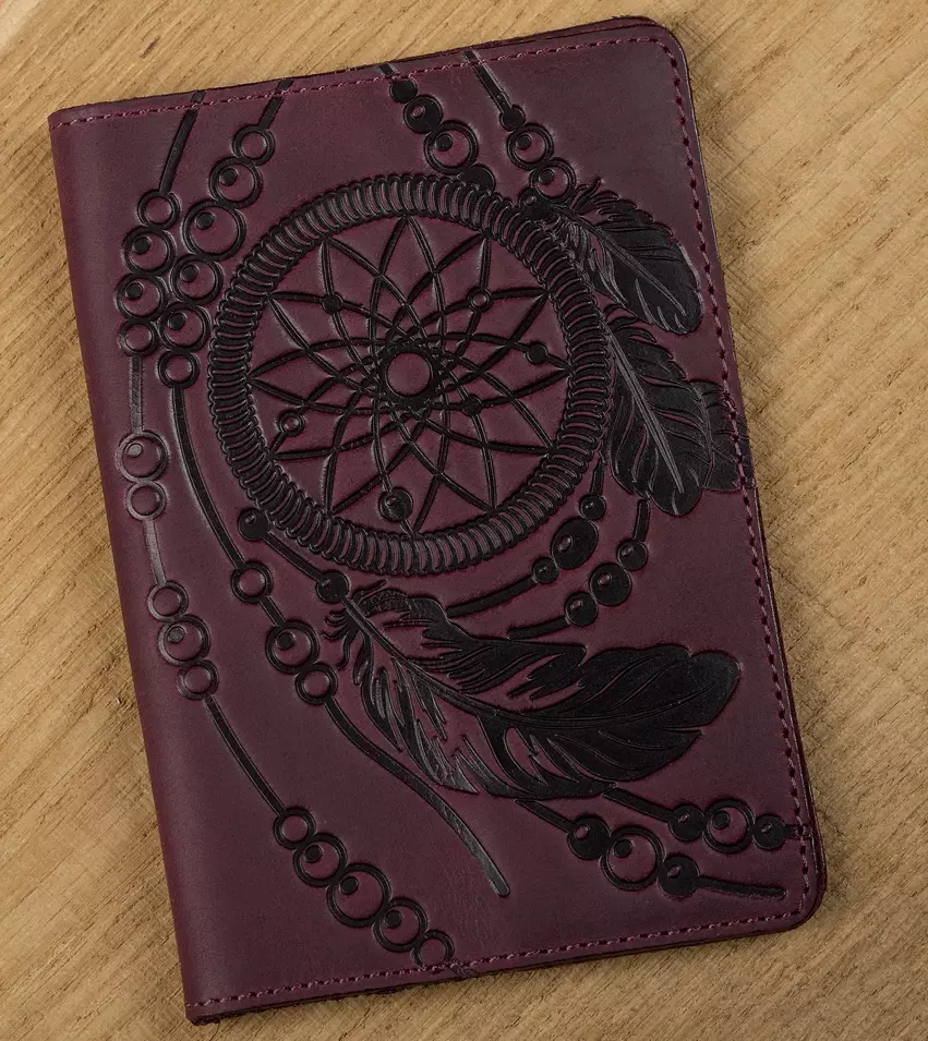 Дизайнерская обложка на паспорт из натуральной кожи. Рисунок на лицевой стороне изделия сделан в стиле индейского талисмана Ловца Снов (dreamcatcher). Внутри обложки Вы найдете тесненный логотип компании-производителя SHVIGEL. Обложка на паспорт поставляется в фирменном текстильном мешочке.