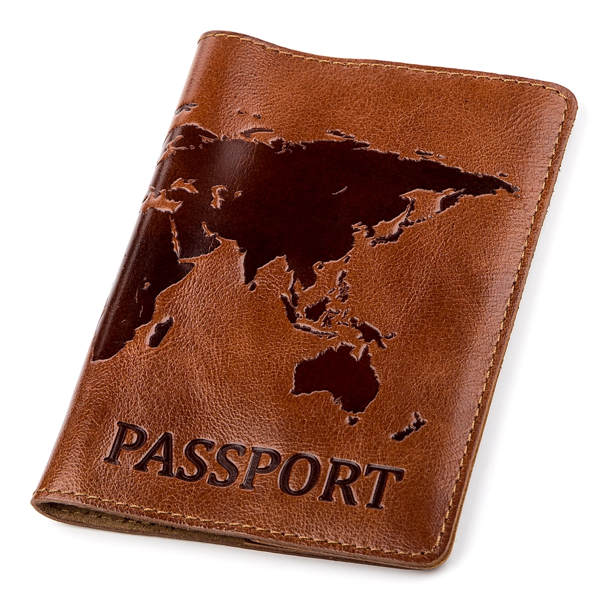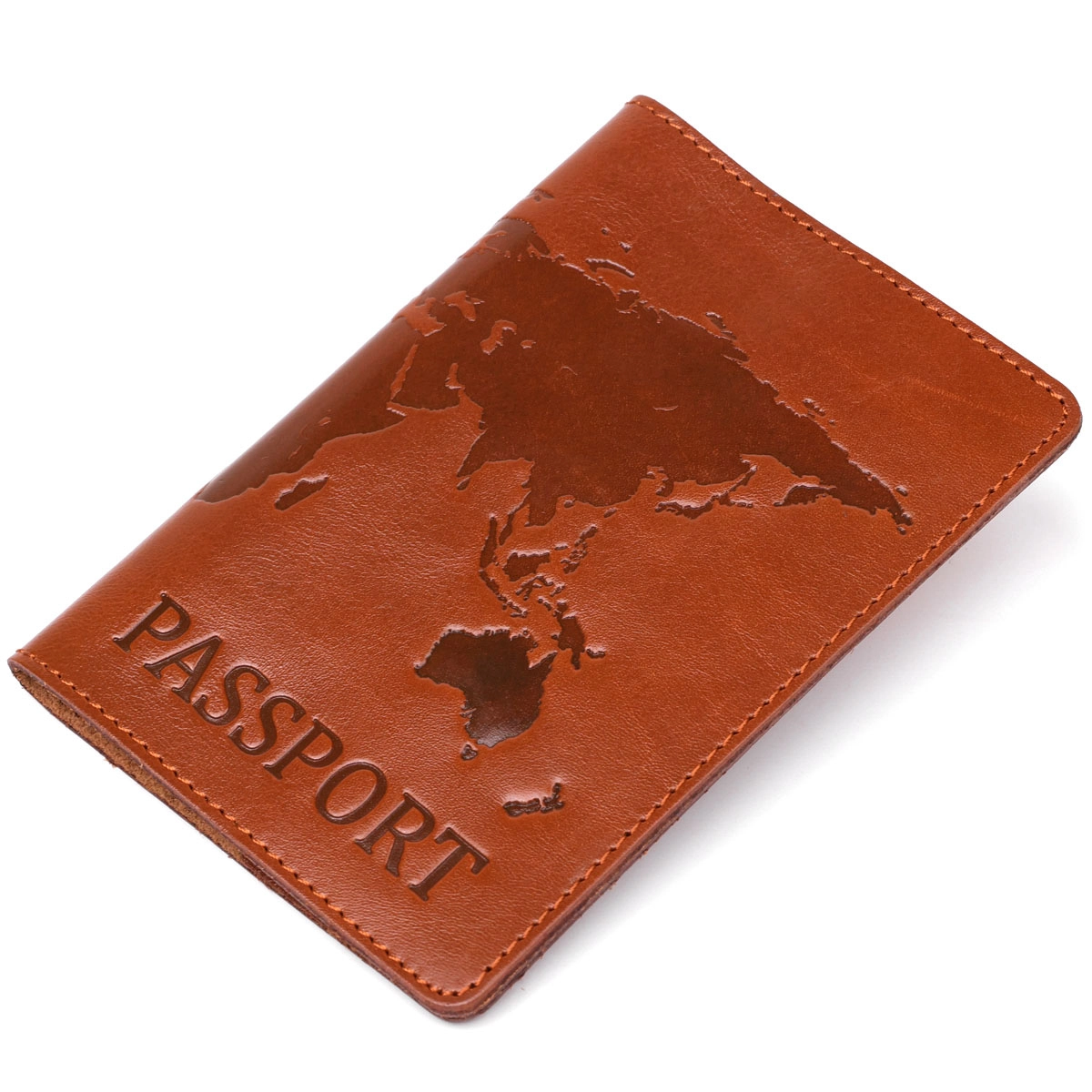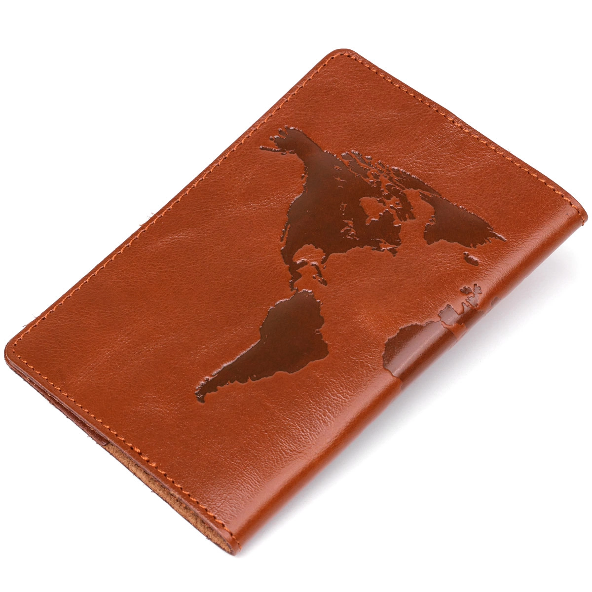 Удобная и стильная обложка на паспорт, коричневого цвета с изображением карты мира, изготовлена из высококачественной натуральной кожи. Современный высококлассный аксессуар, который станет незабываемым подарком для Ваших любимых и близких.