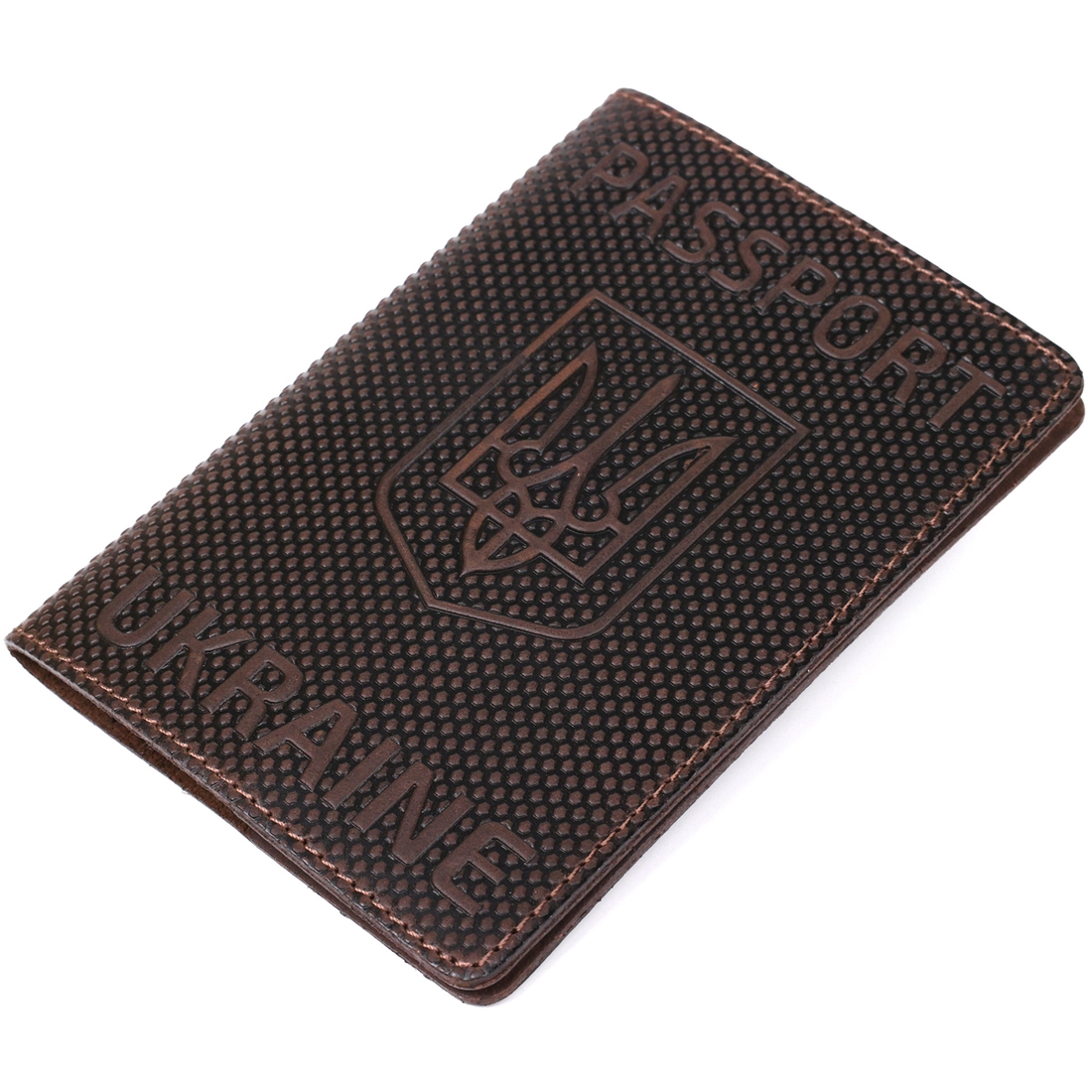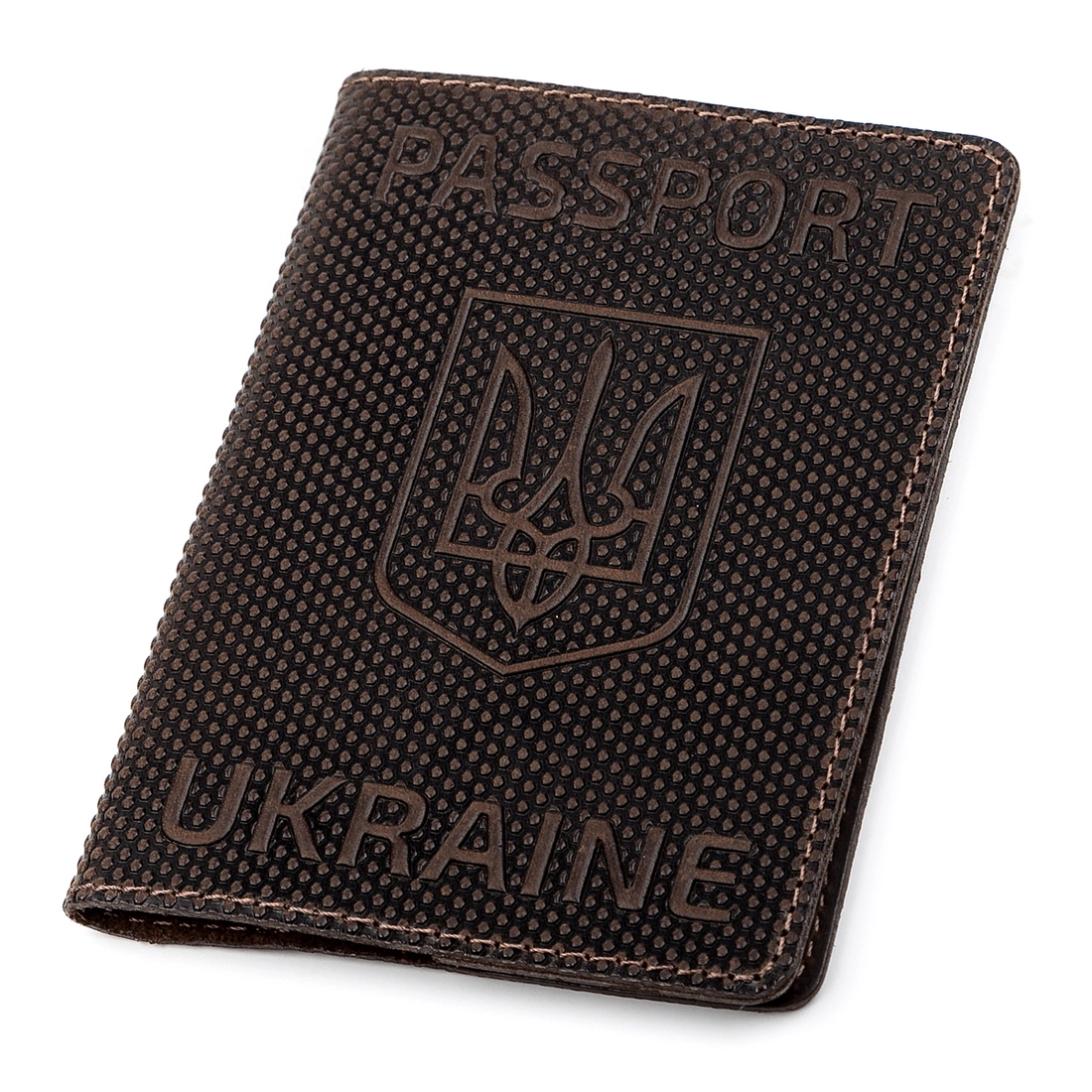 Надежная обложка на паспорт, коричневого цвета с тризубом и