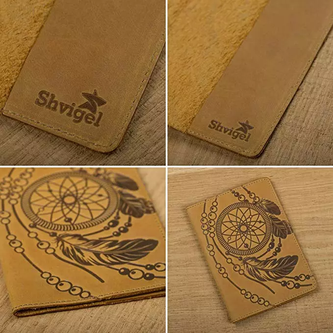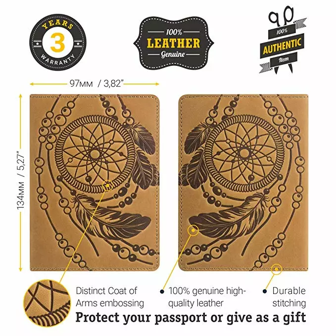 Дизайнерская обложка на паспорт из натуральной винтажной кожи. Рисунок на лицевой стороне изделия сделан в стиле индейского талисмана Ловца Снов (dreamcatcher). Внутри обложки Вы найдете тесненный логотип компании-производителя SHVIGEL. Обложка на паспорт поставляется в фирменном текстильном мешочке.