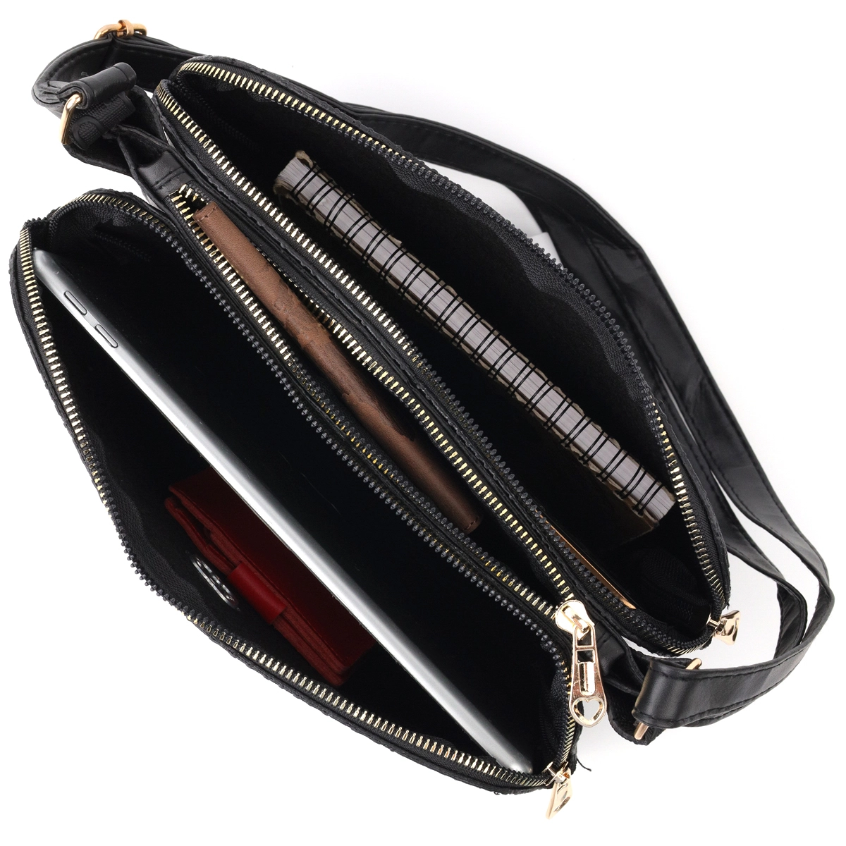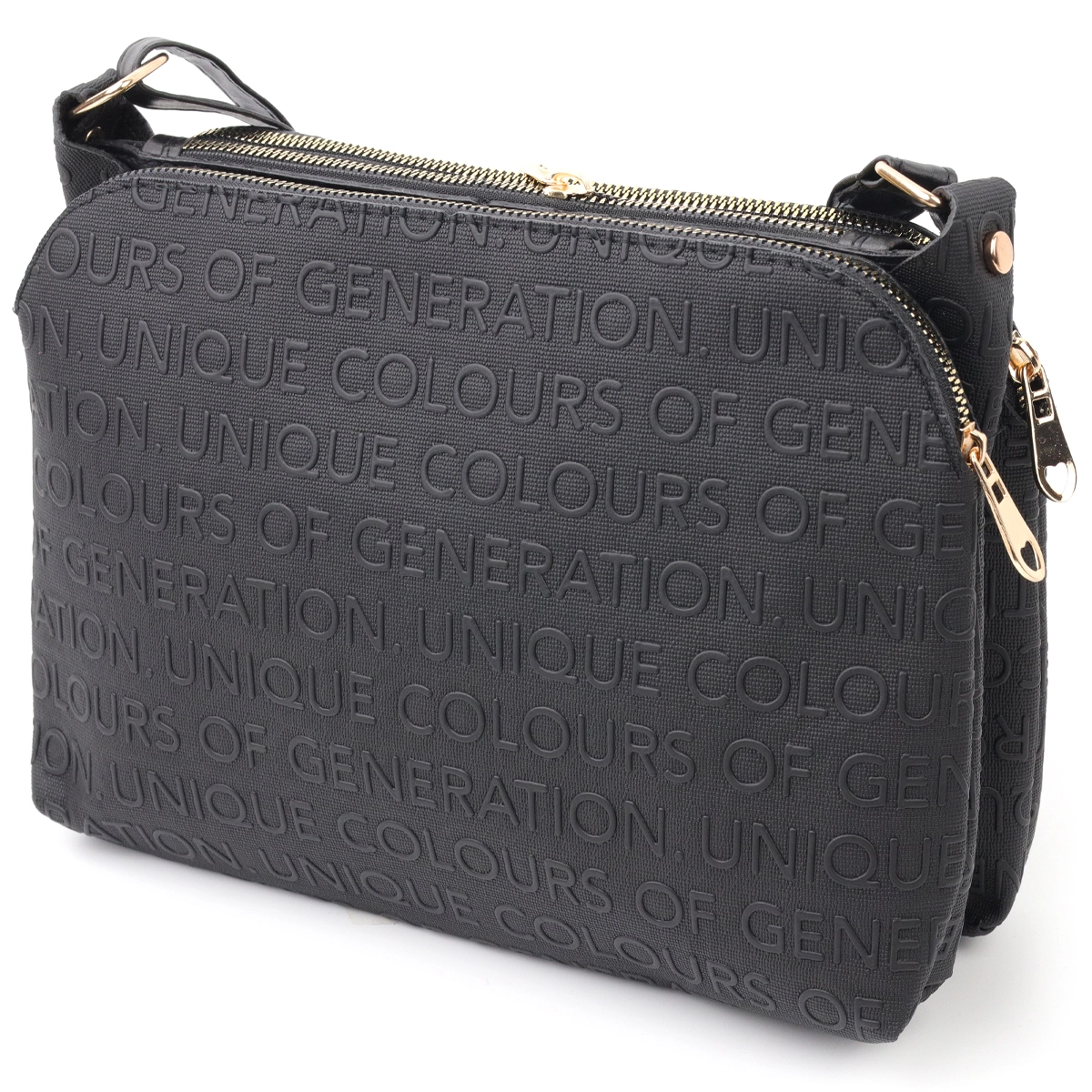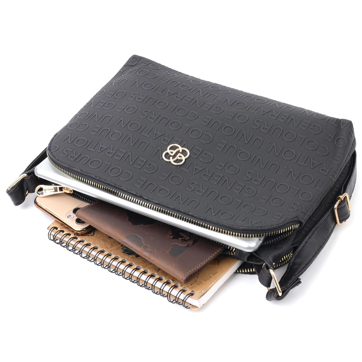 Необычная сумка в черном цвете, из качественной эко-кожи, с буквенным тиснением. Сумка имеет стильный дизайн, регулируемый наплечный ремень. Аксессуар выглядит презентабельно и подойдет как под джинсы та и под вечернее платье. Модель долгое время остается в идеальном состоянии, такую сумку приятно носить. Может быть отличным вариантом для подарка стильной женщине.