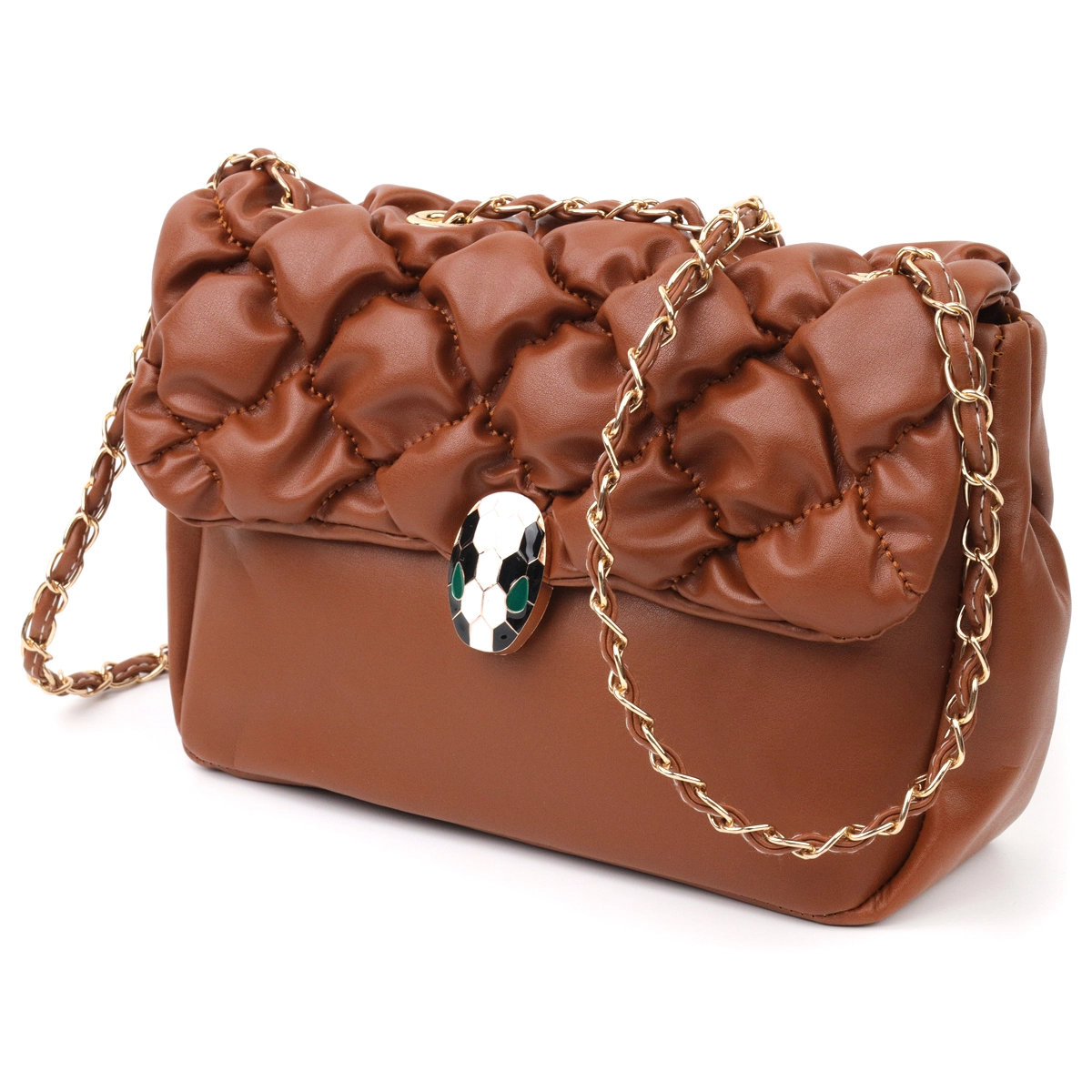 цвете, из стеганной эко-кожи. Сумка имеет стильный дизайн и