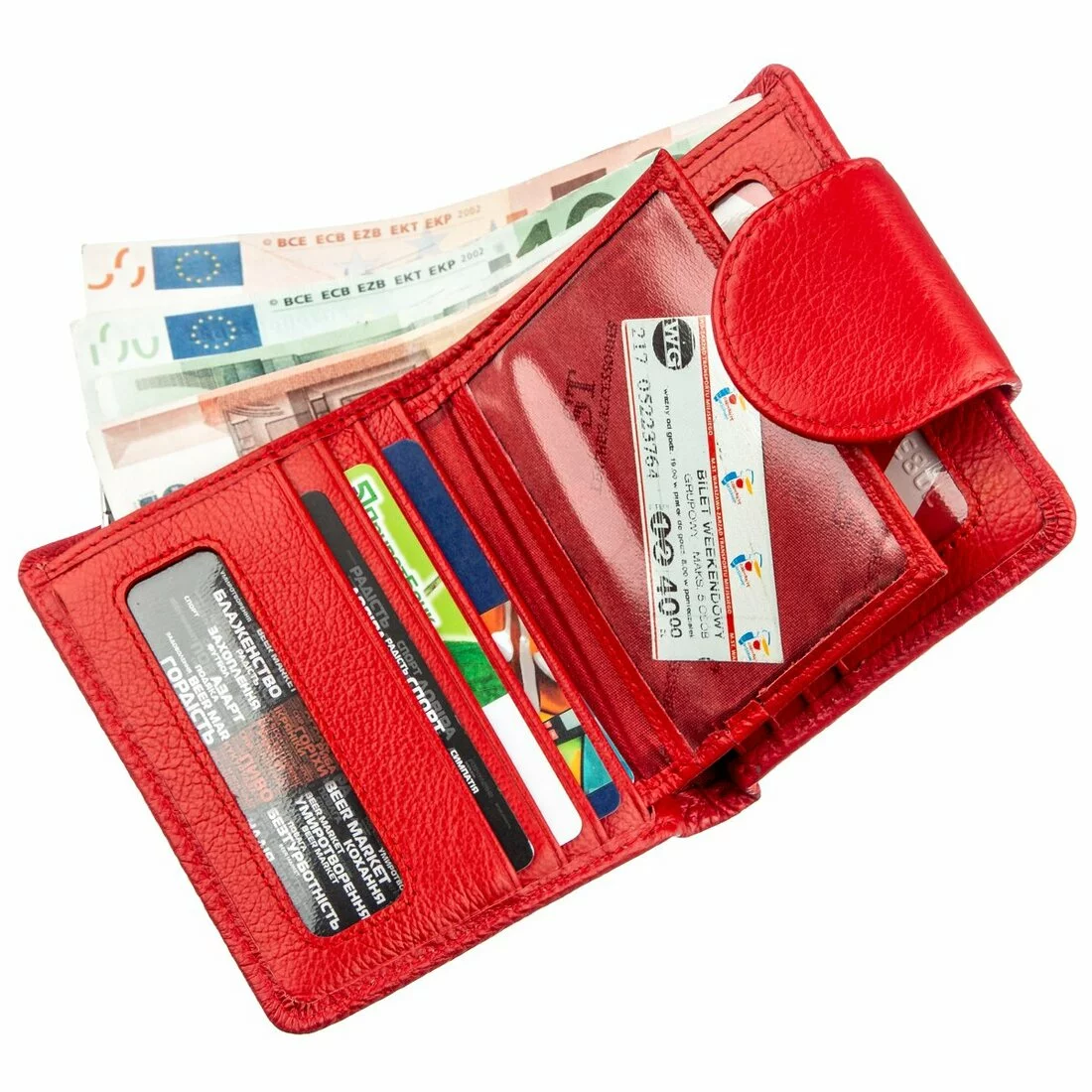 - женский бумажник из натуральной кожи на кнопке;