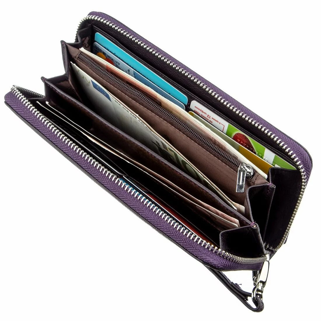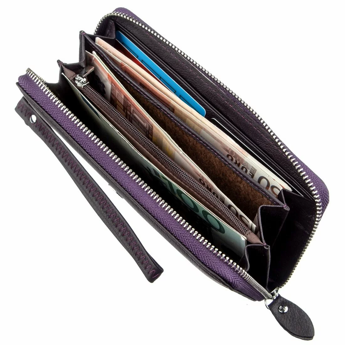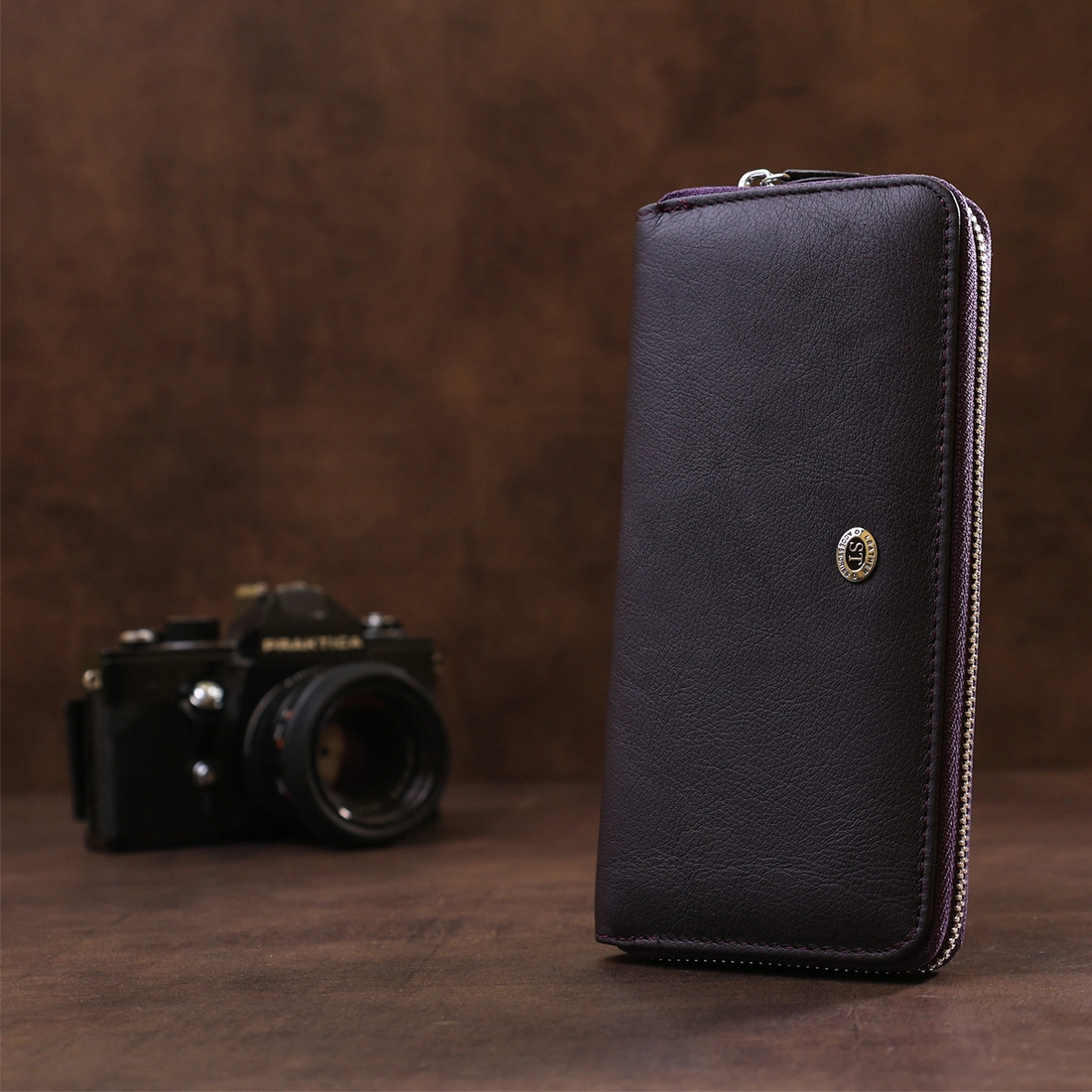 Вместительный женский клатч для деловых дам. Изготовлен он из высококачественной и износостойкой натуральной кожи с матовой, зернистой фактурой. Кожа приятная на ощупь и очень мягкая. Данная модель может похвастаться неброским, но достаточно оригинальным темно-фиолетовым цветом, который точно подчеркнет чувство стиля и непосредственность своей владелицы. Закрывается клатч на массивную металлическую серебренную молнию. Такой аксессуар можно носить как на запястье с помощью специального ремешка, так и в любой дамской сумочке. Упаковка представлена в виде белой картонной коробки с фирменным логотипом.