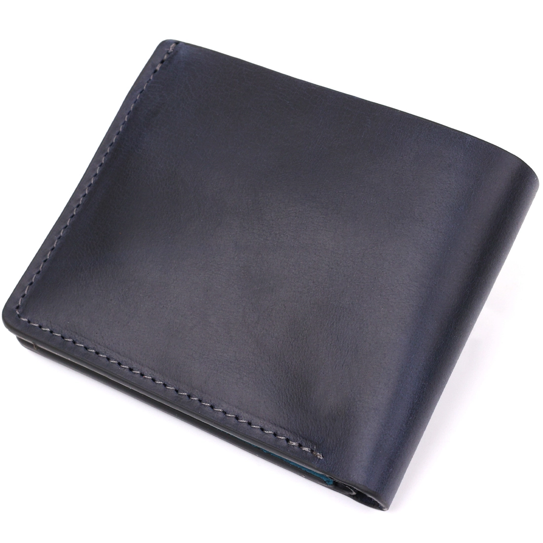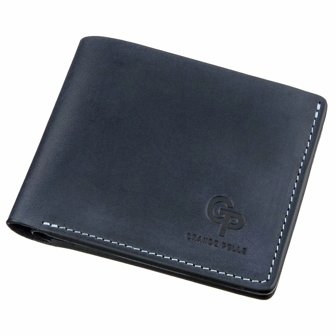 - 3 слота под кредитки из натуральной кожи голубого цвета;
