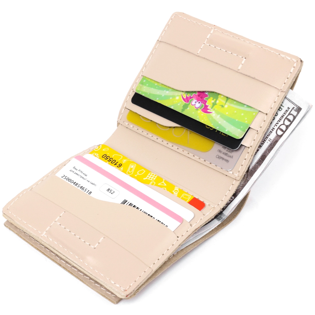 Интересное женское портмоне в бежевом цвете от украинского