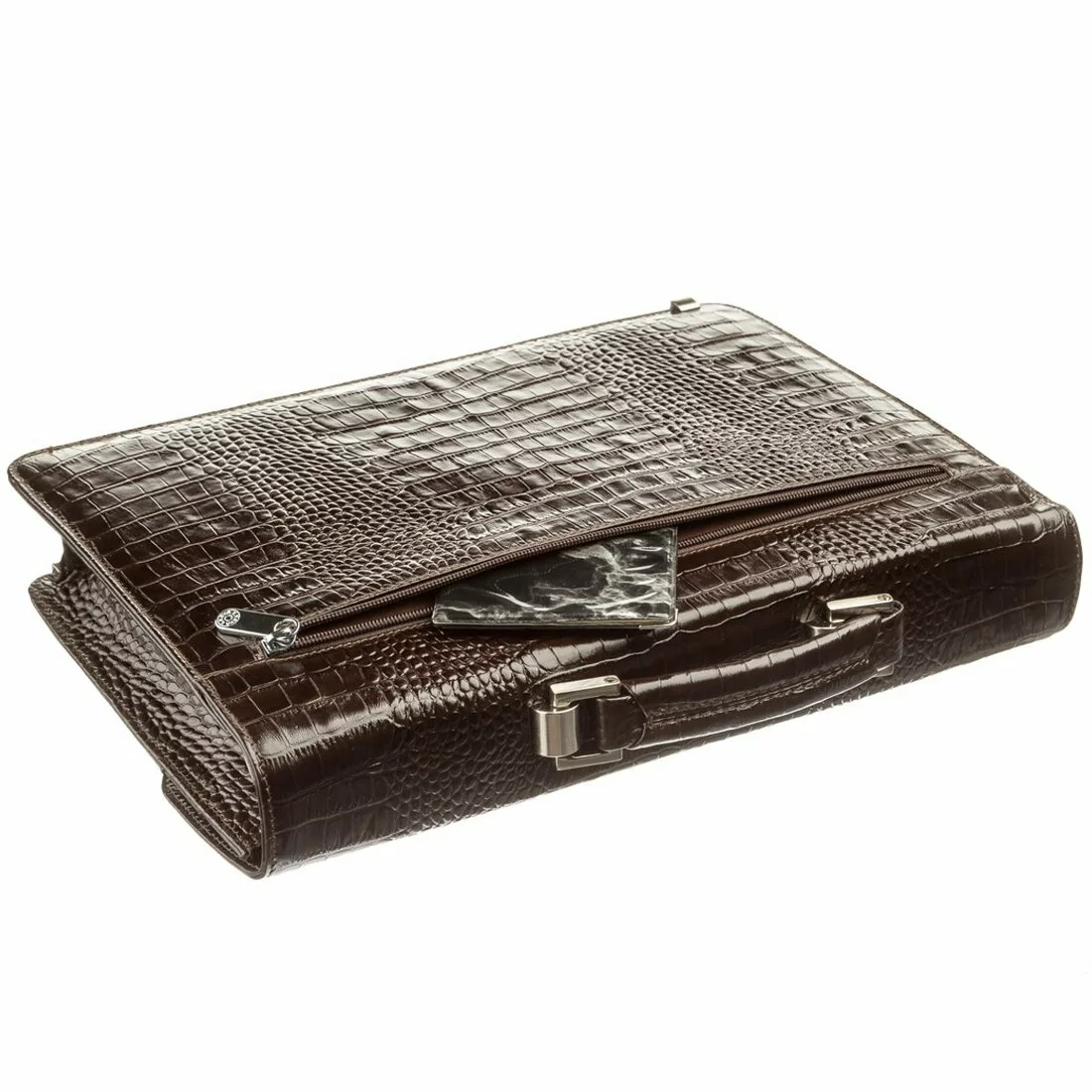 Солиднейший мужской портфель выполнен из толстой, качественной кожи. Подойдет для деловых и статусных людей, которые носят с собой много документов, планшет, ноутбук. В портфель легко вместится все необходимое. При желании портфель можно закрыть на кодовый замок и все ваши вещи будут в полной безопасности. Внизу изделия есть металлические ножки, которые повышают износостойкость изделия. Вы можете не переживать портфель очень долго носится и долгое время остается в идеальном состоянии. Фабрика очень давно на рынке и уже отлично зарекомендовала себя и уже давно пользуется огромной популярностью. Портфель имеет съемную кожану ручку, что добавляет удобства носить на плече. Аксессуар будет прекрасным подарком для близкого человека, а его обладатель точно останется доволен. В комплекте идет тканевый мешок для хранения изделия от пыли.