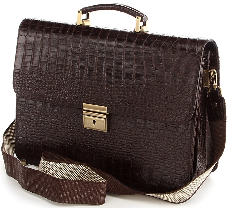 Современный кожаный мужской портфель небольших размеров. Аксессуар выглядит очень стильно и, несомненно, понравится мужчинам, которые предпочитают деловой стиль одежды. Цвет фурнитуры: желтый. В комплекте имеется плечевой ремень. Портфель упакован в текстильный пылезащитный мешочек черного цвета.