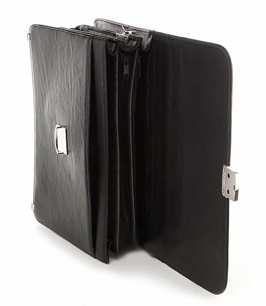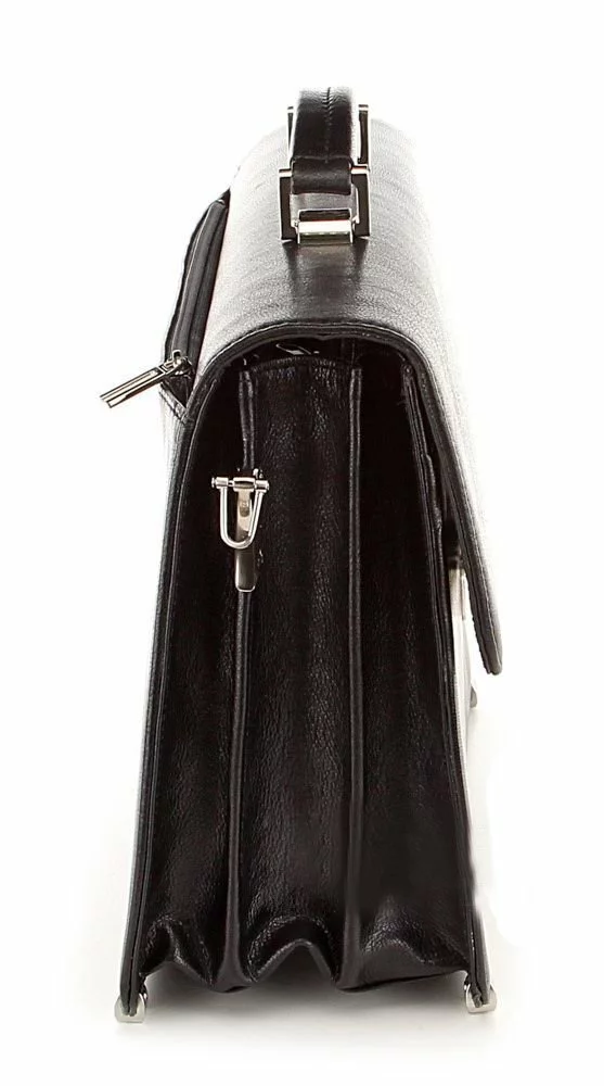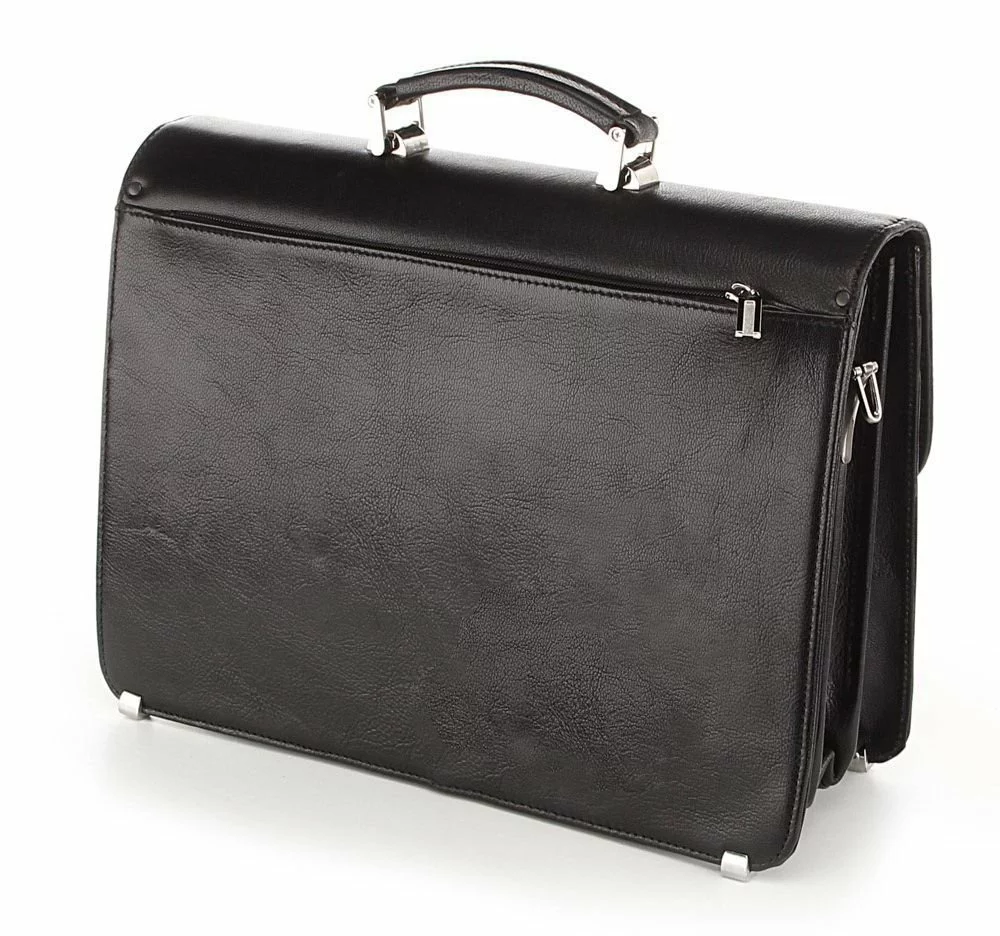 На задней внешней стороне аксессуар расположен карман на молнии. Портфель имеет металлические ножки на дне, которые защищают изделие от механического повреждения.