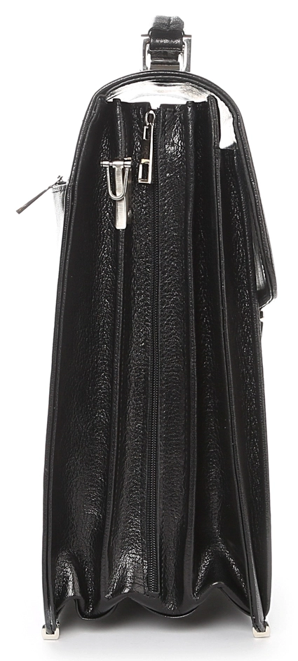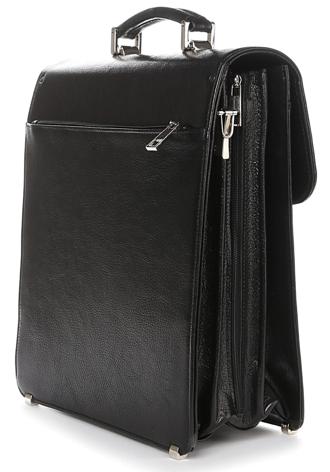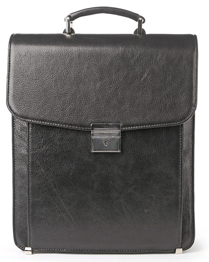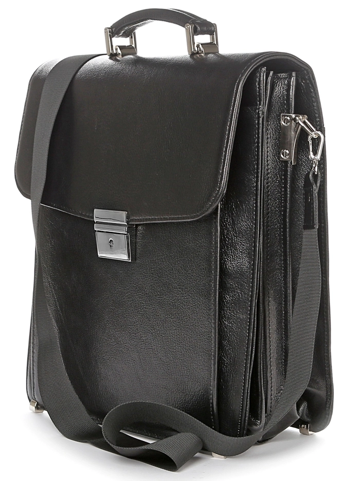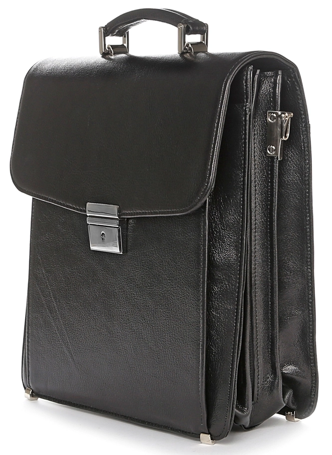 Большой мужской портфель-барсетка вертикального формата. Изделие изготовлено из натуральной высококачественной кожи черного цвета с едва заметным блеском. Цвет фурнитуры: серебро. Барсетка является отличным решением для подарка руководителю, отцу, мужу или любому другому мужчине предпочитающему деловой стиль одежды. Портфель упакован в текстильный пылезащитный чехол.