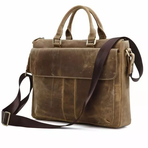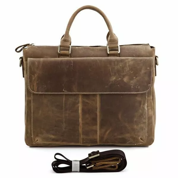 Уникальная сумка-портфель их качественной винтажной кожи коричневого цвета. Сумку можно носить как в руке так и через плече, при помощи текстильного плечевого ремня коричневого цвета.